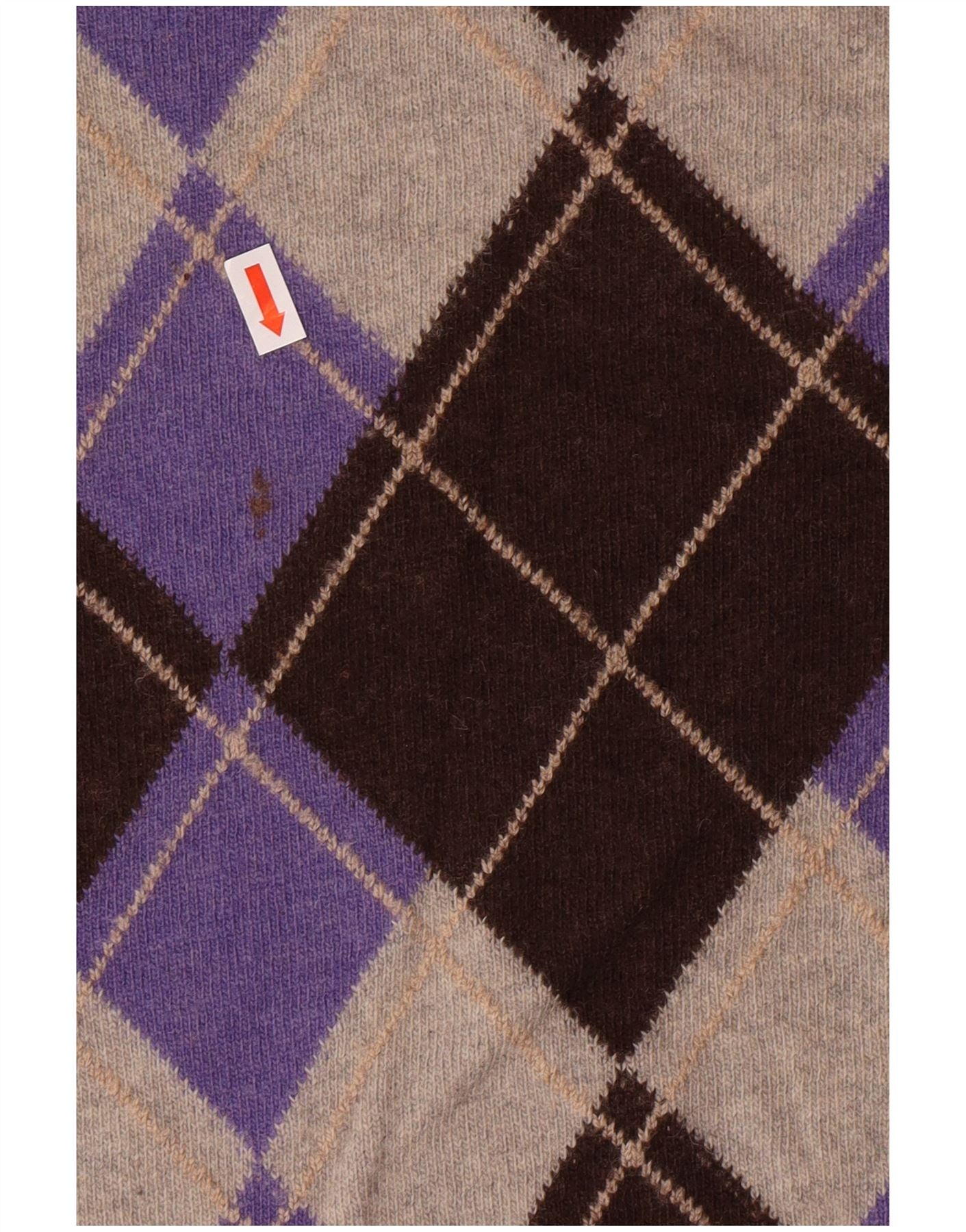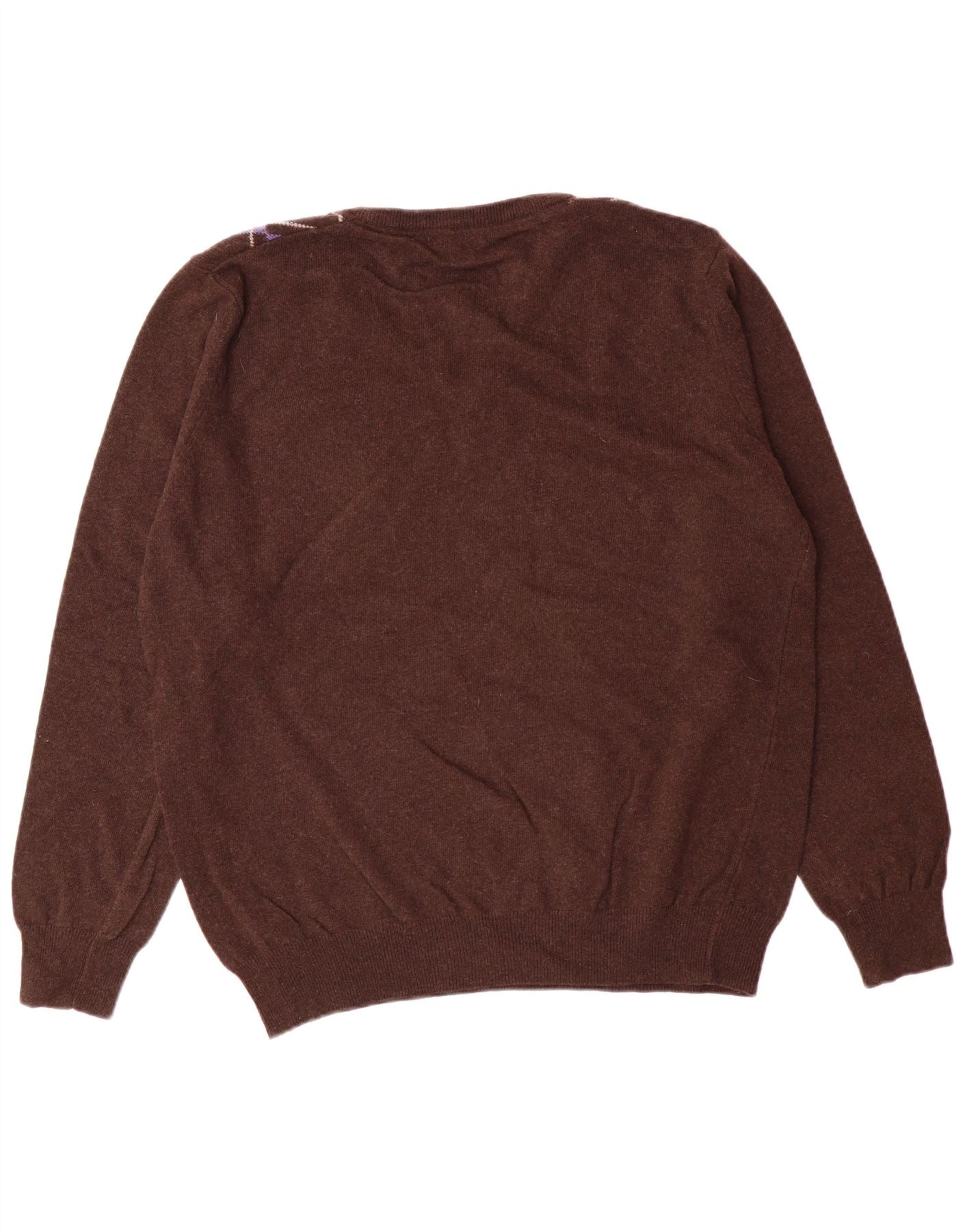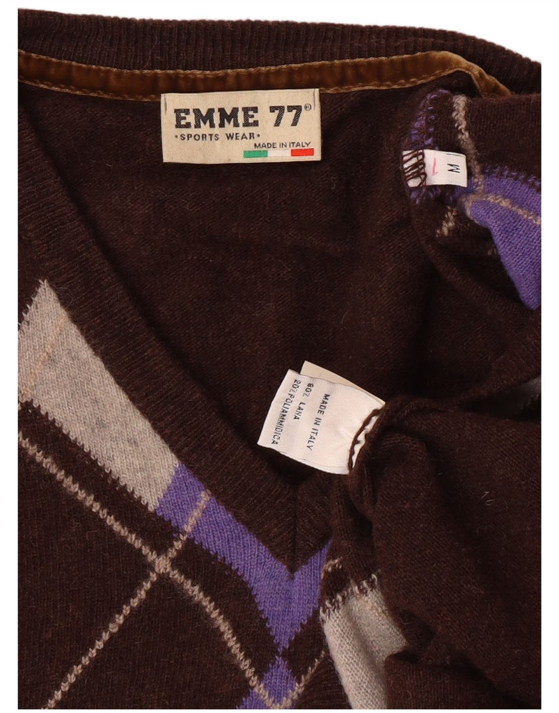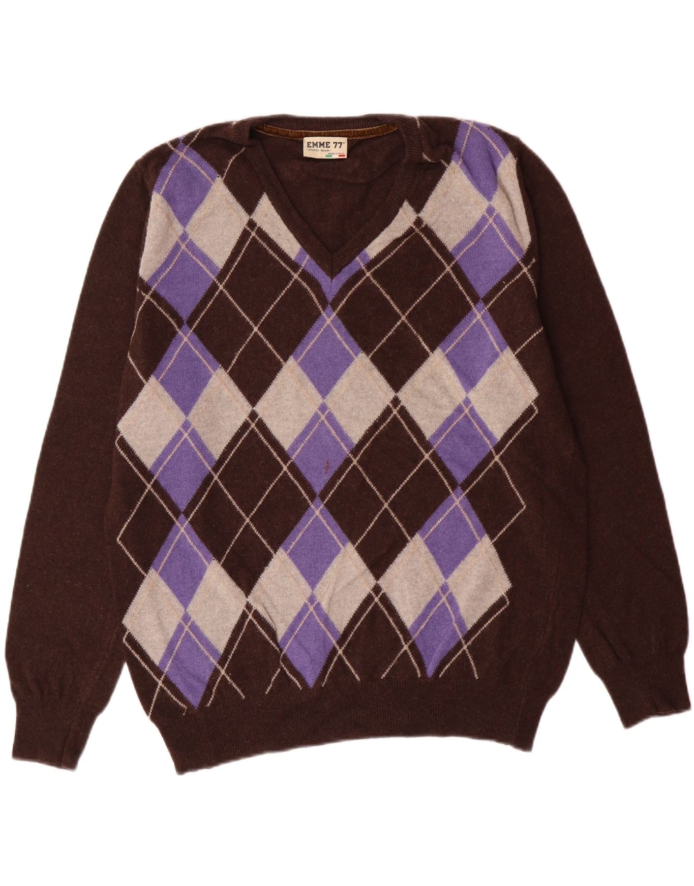 EMME 77 Maglione da uomo con scollo a V in lana a rombi/diamante marrone medio