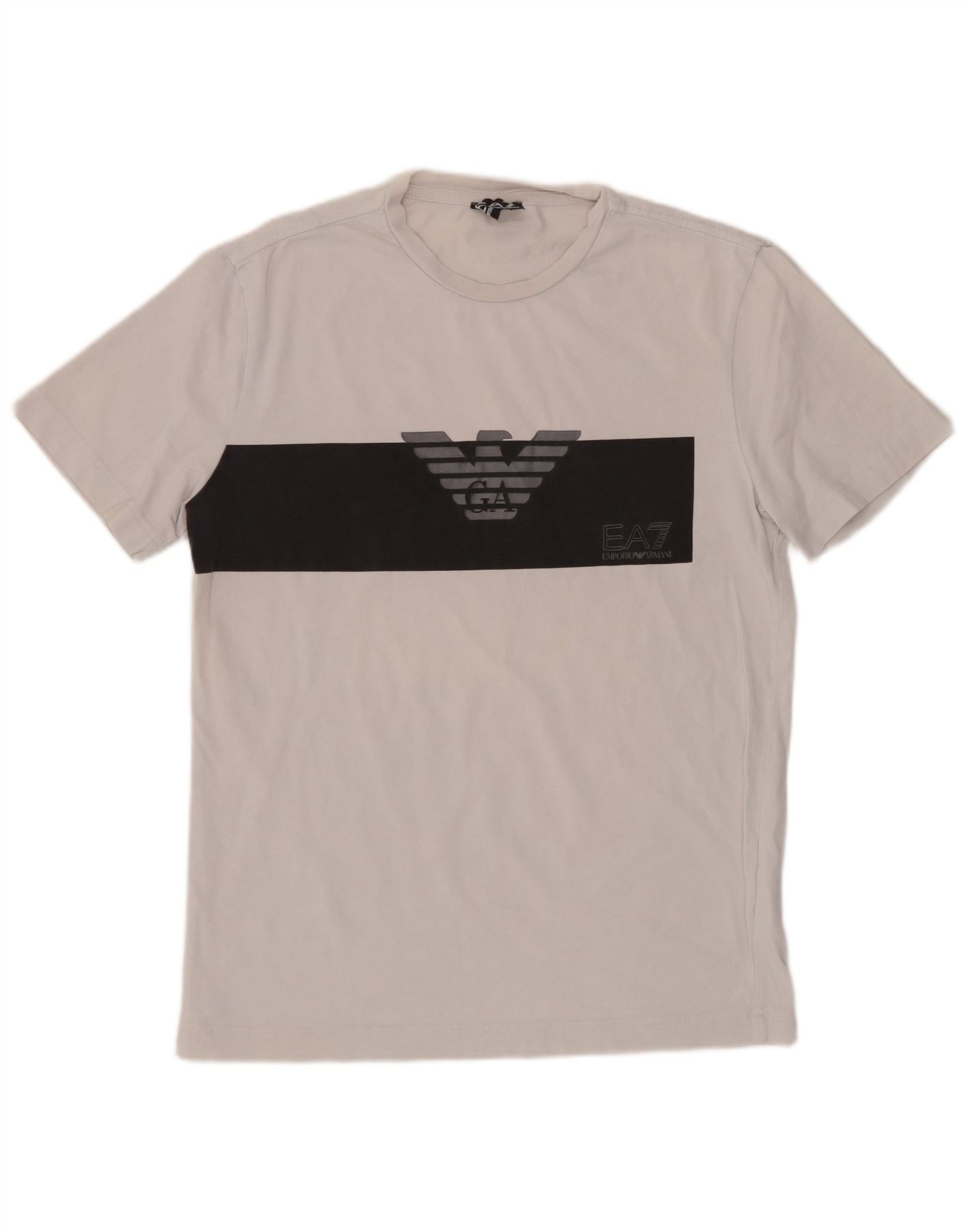 EMPORIO ARMANI T-shirt grafica da uomo Top Small in cotone color block bianco