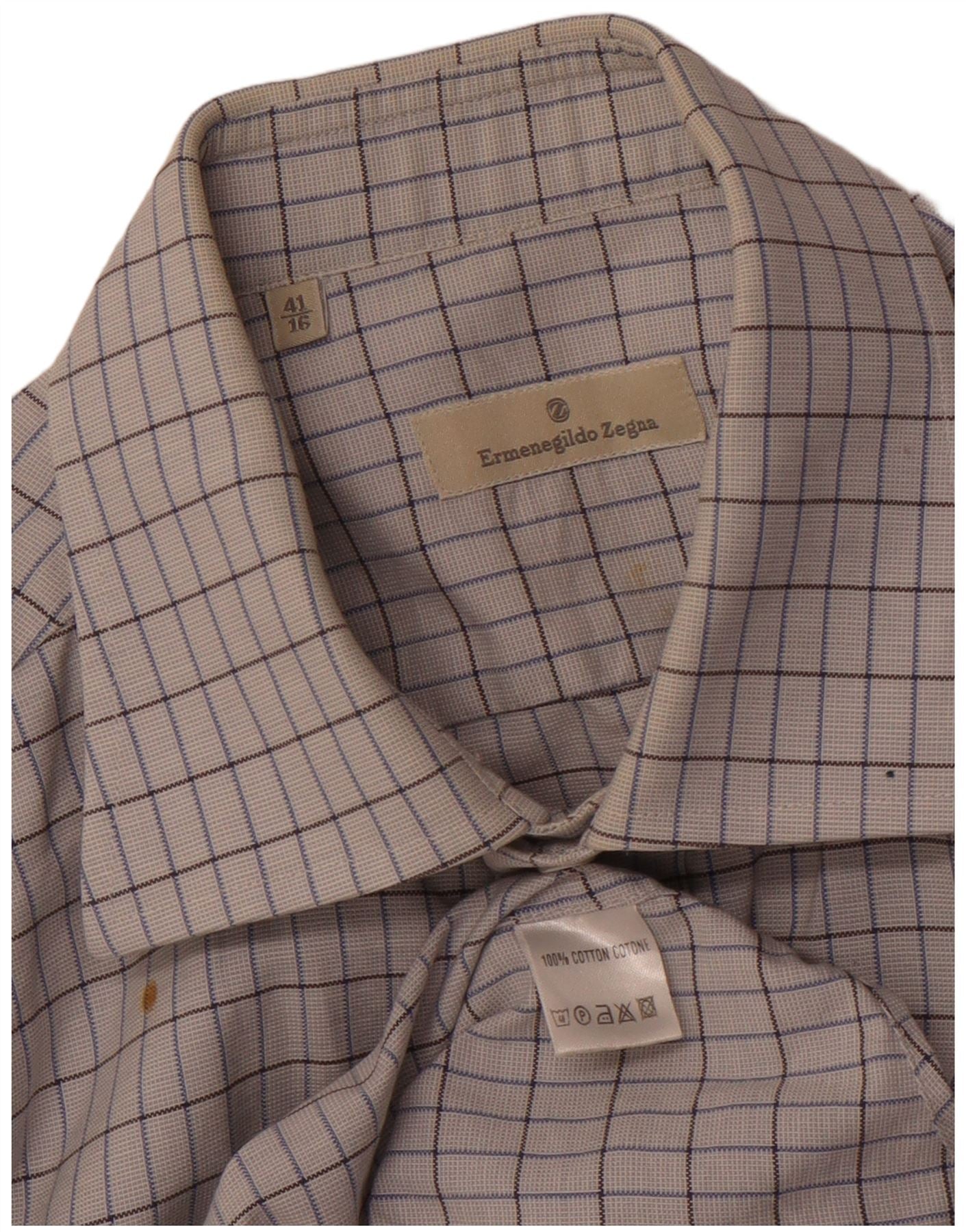 Camicia da uomo ERMENEGILDO ZEGNA Taglia 41 16 Cotone a quadri bianco sporco grande