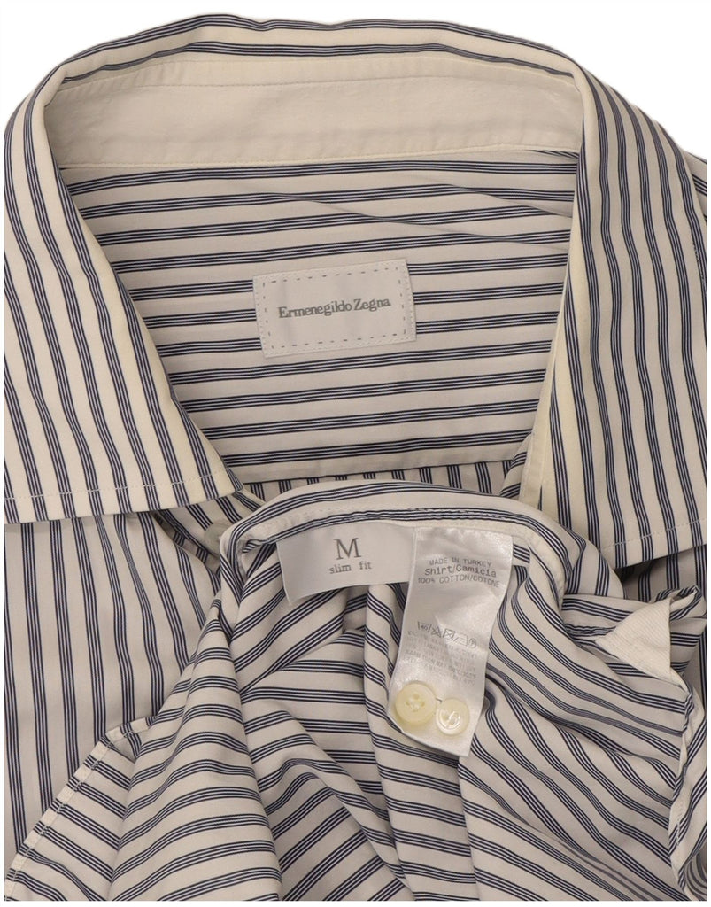 ERMENEGILDO ZEGNA Mens Slim Fit Shirt Medium Blue Striped Cotton