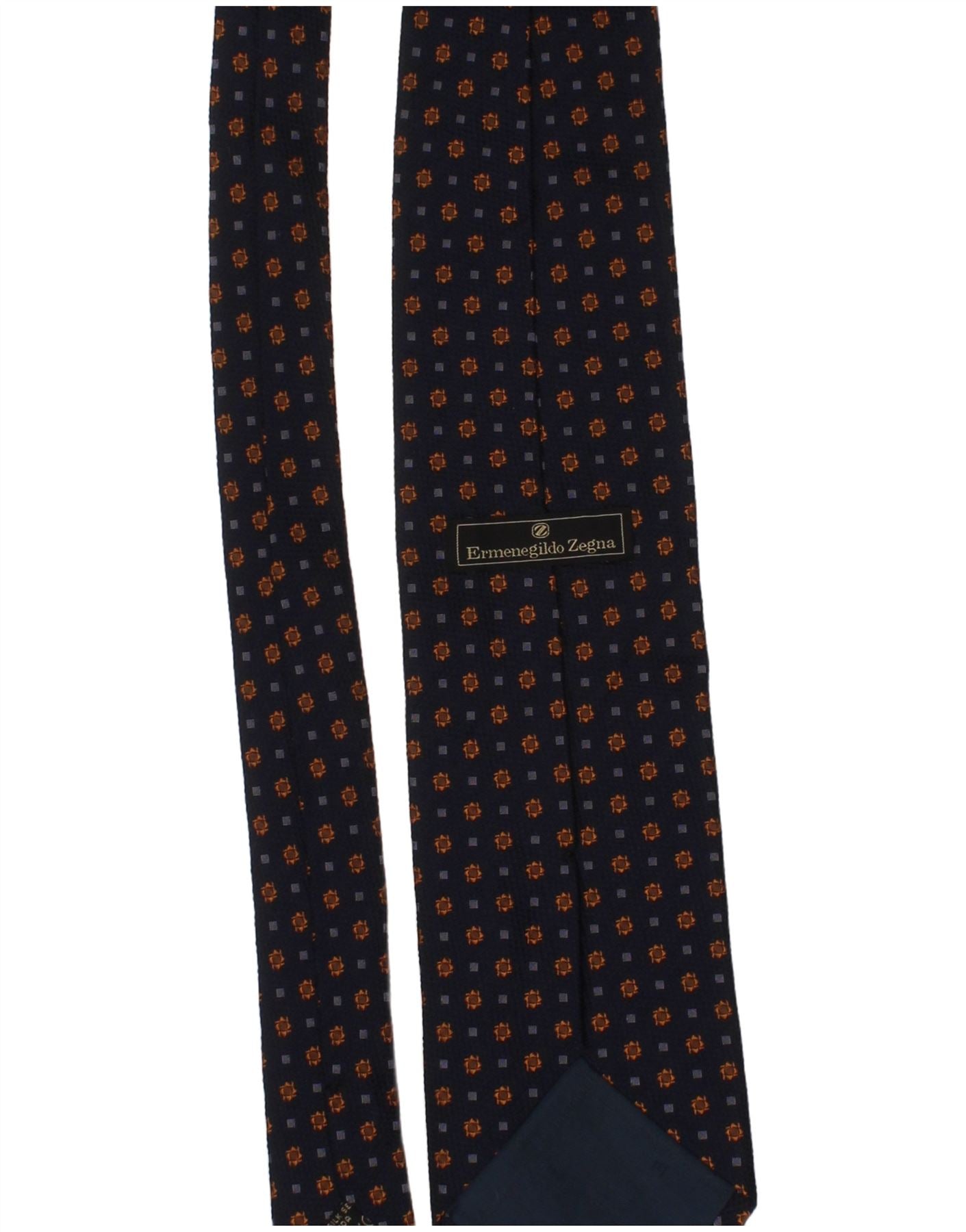 ERMENEGILDO ZEGNA Mens Tie One Size Navy Blue Geometric Silk Classic