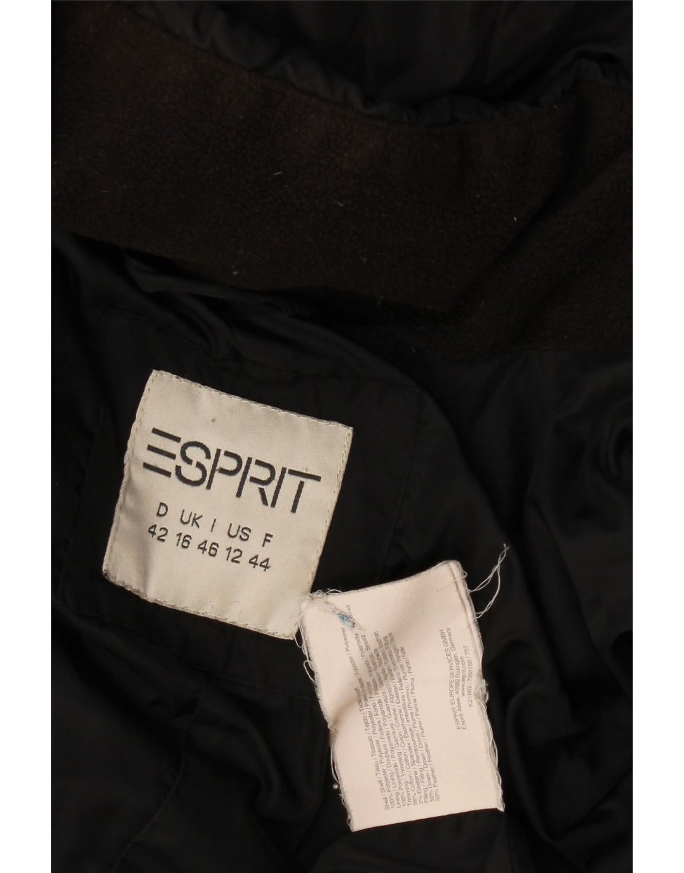 Cappotto imbottito con cappuccio da donna Esprit UK 16 grande nero in poliammide