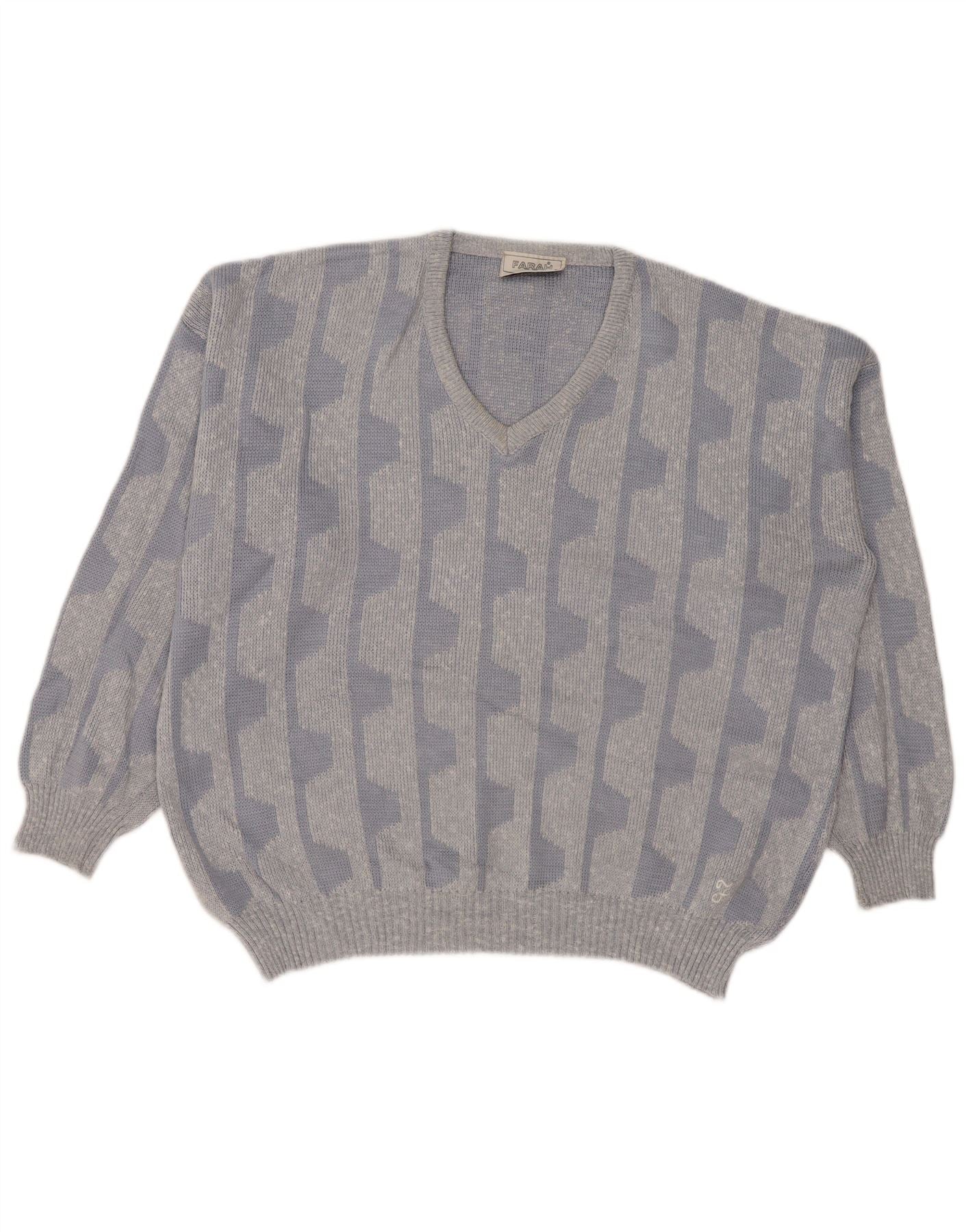 Maglione da uomo con scollo a V Farah UK 42 Grande acrilico geometrico blu
