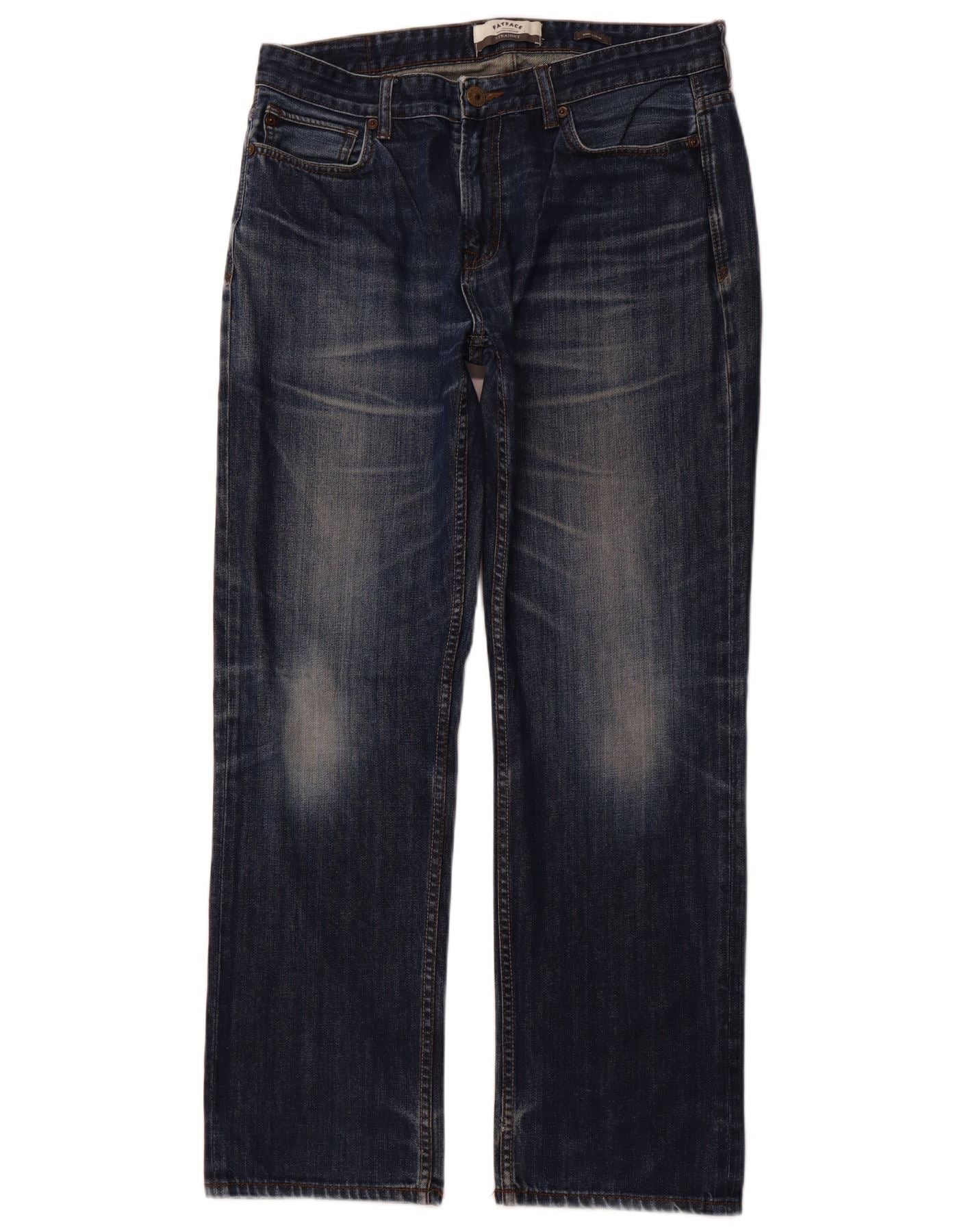 FAT FACE Jeans dritti da uomo vestibilità regolare lavaggio acido W36 L31 cotone blu