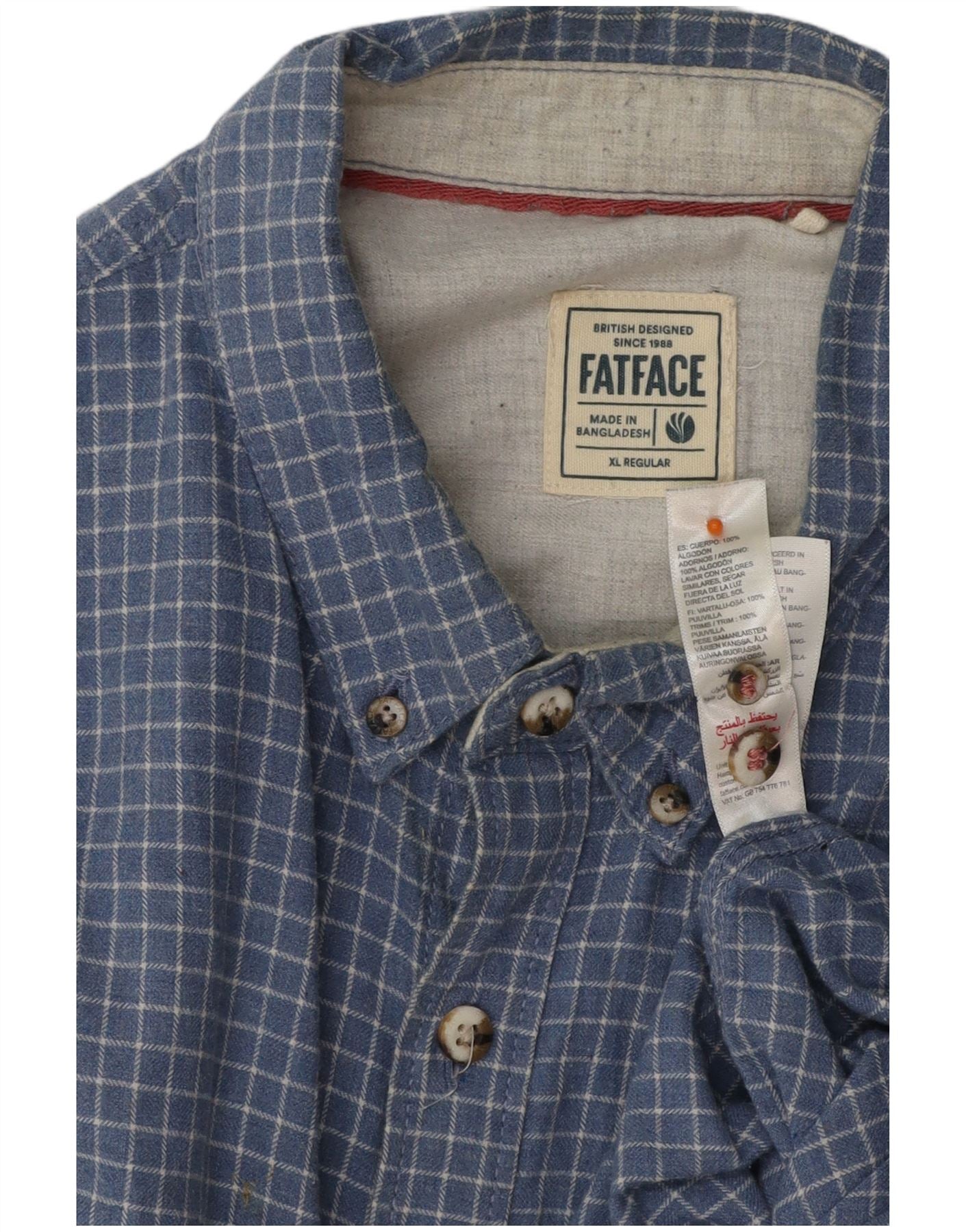 FAT FACE Camicia da uomo in flanella vestibilità regolare XL in cotone a quadri blu