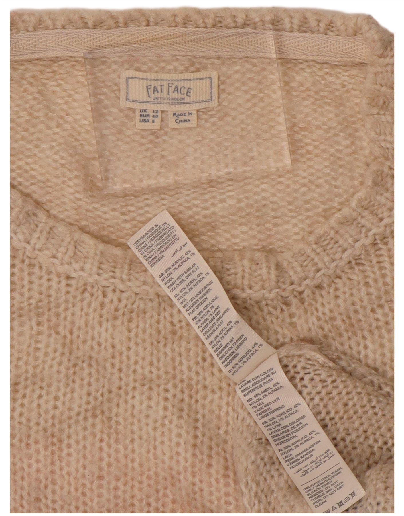 FAT FACE Maglione da donna con scollo a barchetta UK 12 A righe beige medio