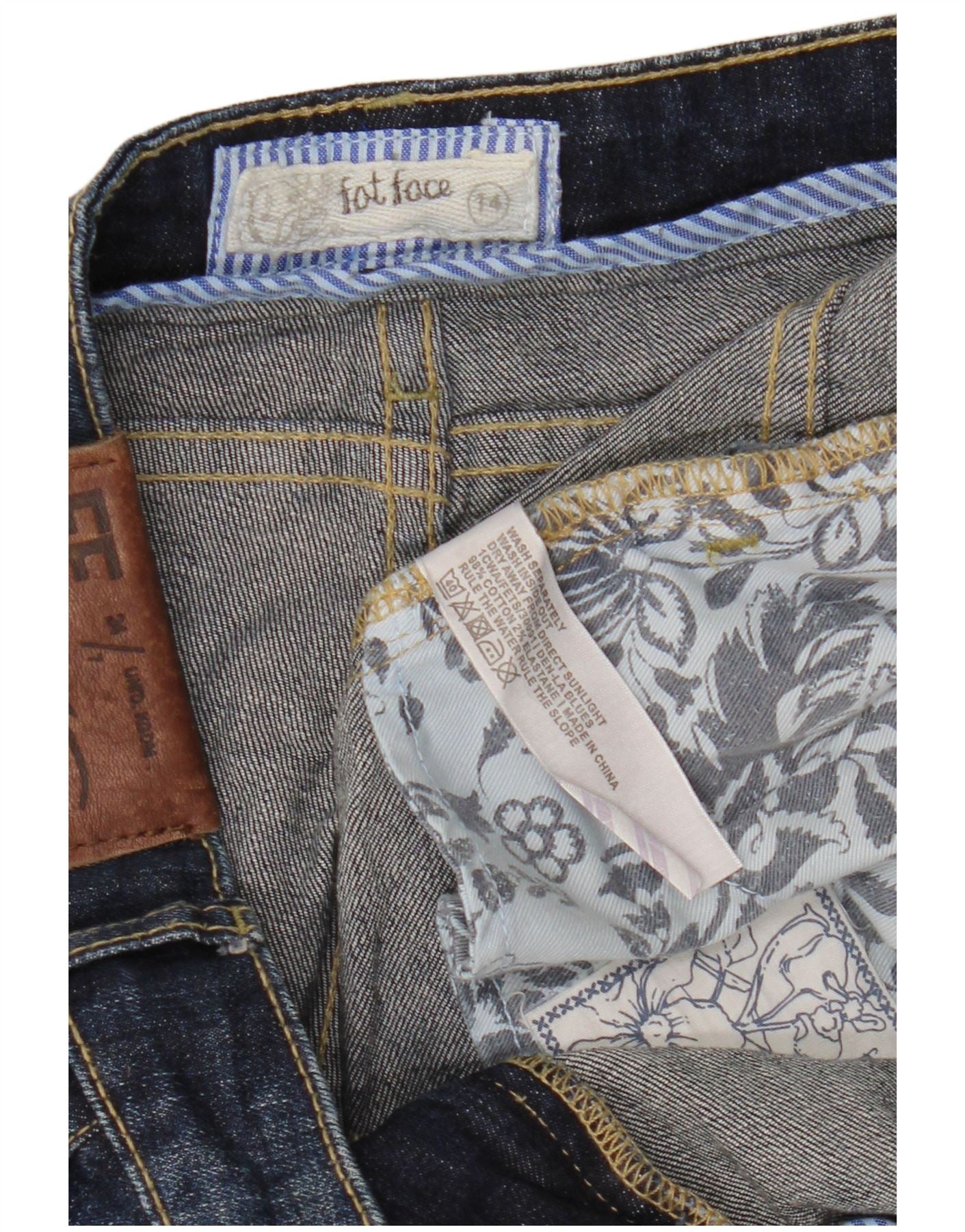 FAT FACE Jeans corti da donna UK 14 Large W34 L24 Cotone blu navy