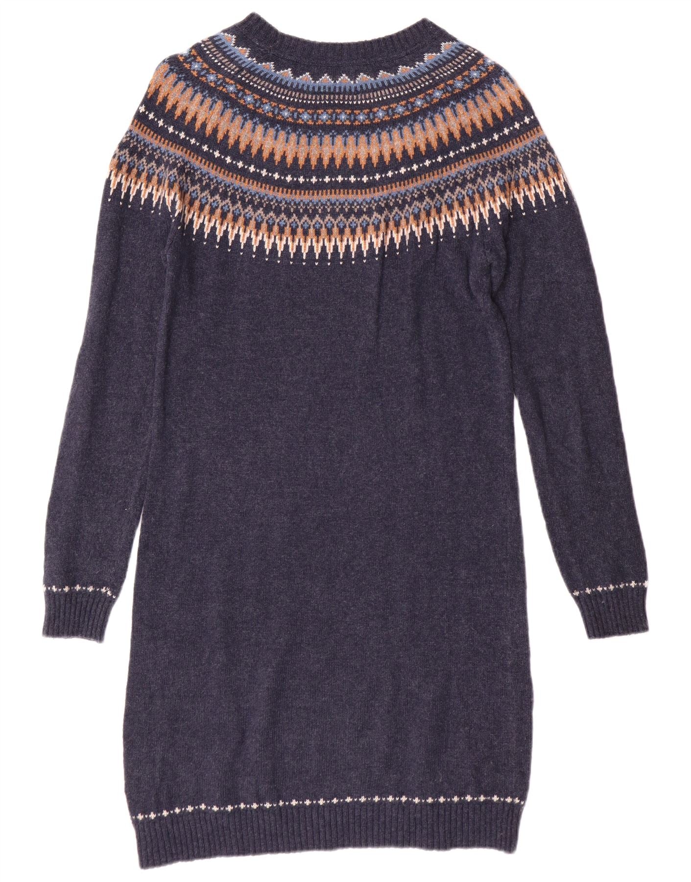FAT FACE Abito maglione da donna UK 10 Piccolo cotone Fair Isle blu navy