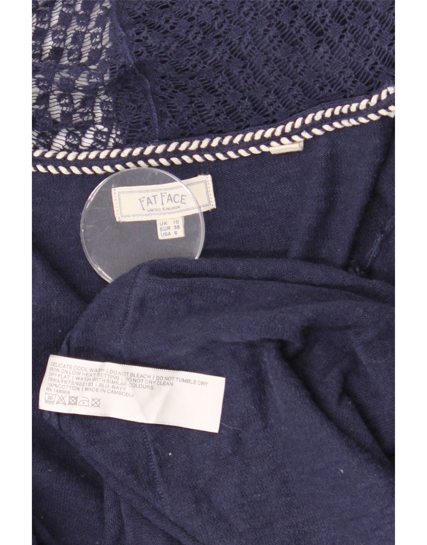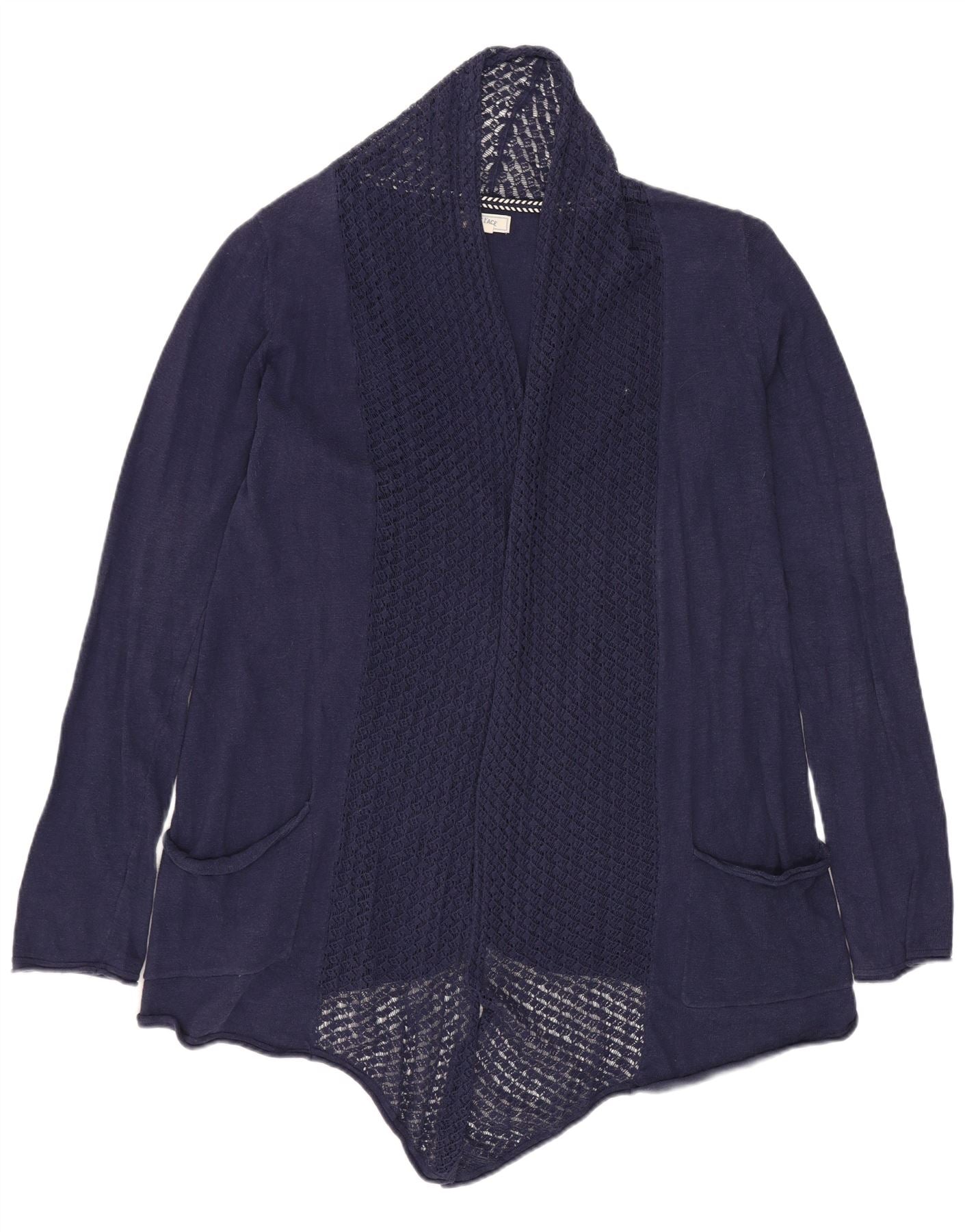 FAT FACE Maglione cardigan aperto da donna UK 10 Piccolo cotone blu navy