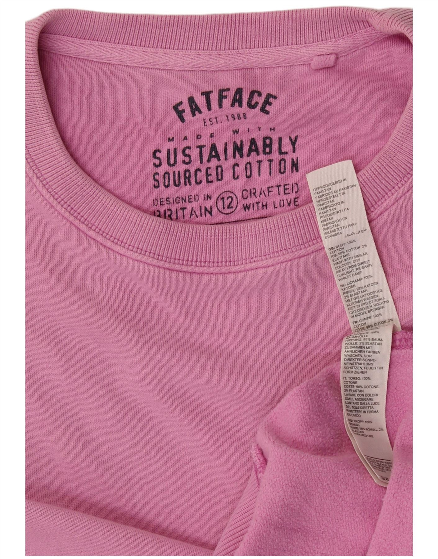 FAT FACE Felpa da donna Maglione UK 12 Cotone rosa medio