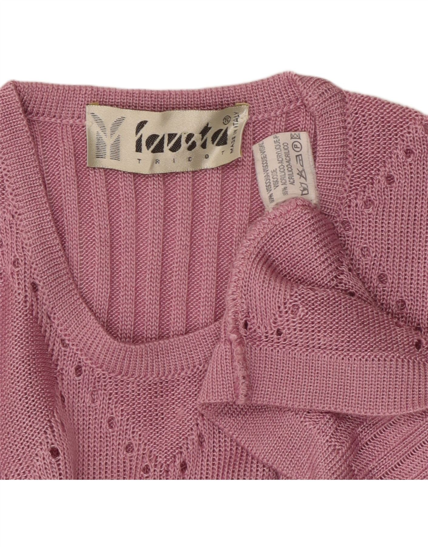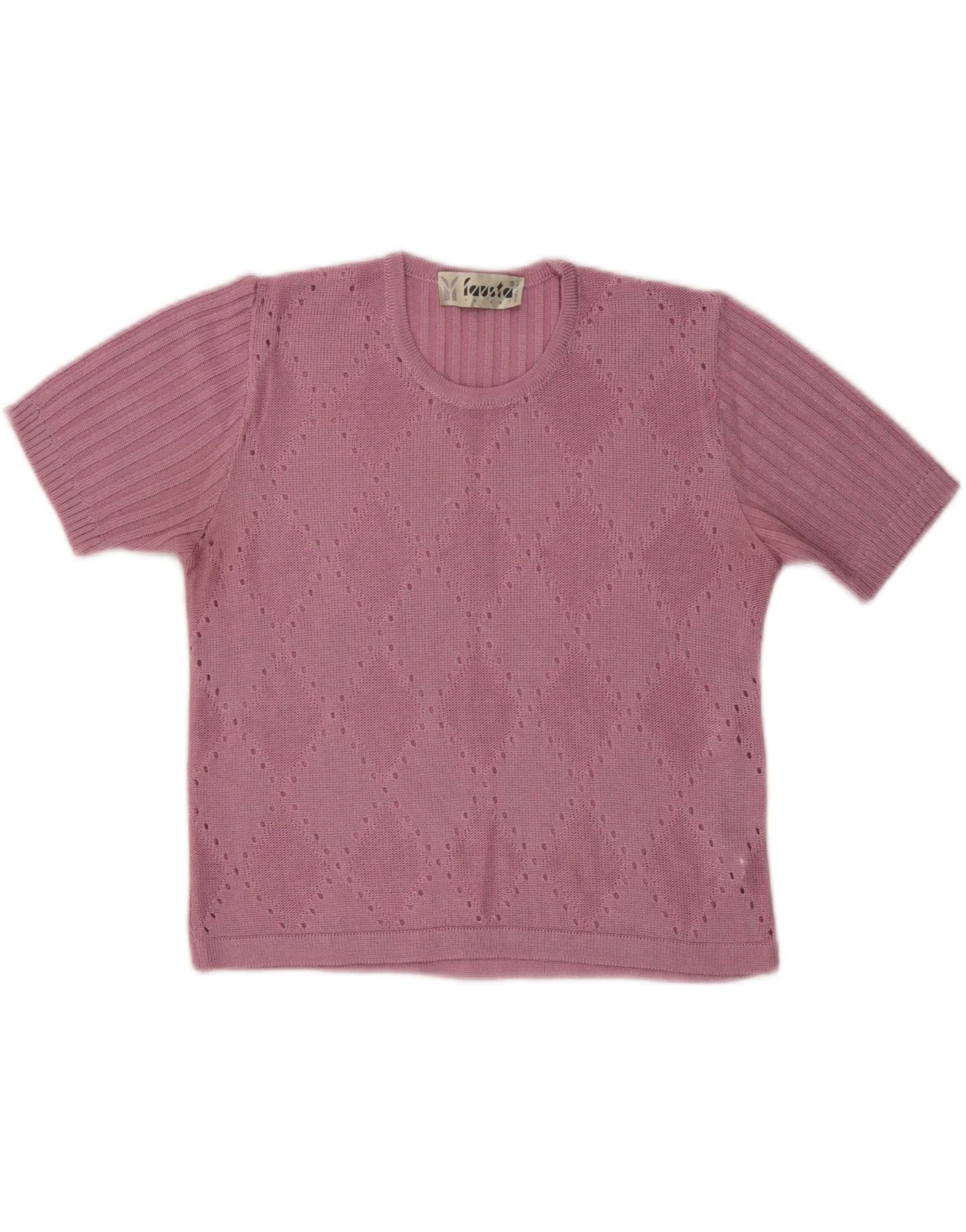 FAUSTA Maglione da donna girocollo a maniche corte UK 10 piccolo rosa