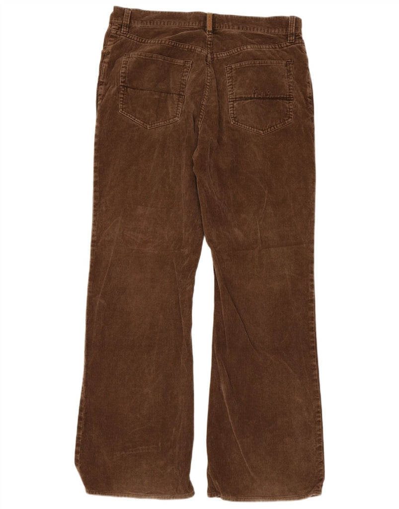- AI Description: These Fcuk men's Corduroy Trousers are crafted from rich brown corduroy, offering a soft, ribbed texture. They feature a regular fit with a bootcut leg, flaring gently towards the ankle. A button closure ensures a secure fit. Practical pockets provide functionality. A subtle logo detail adds a branded touch.