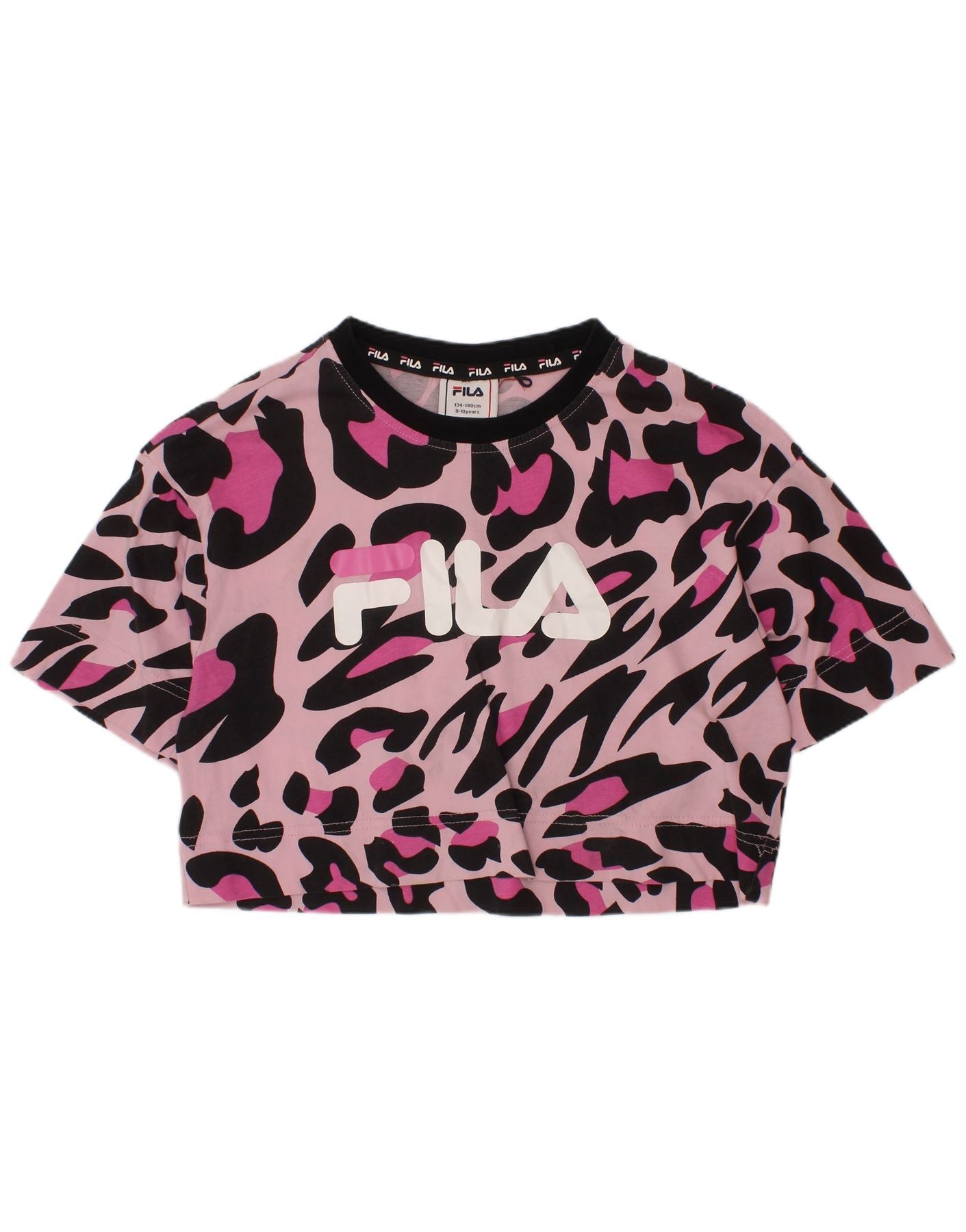 T-shirt corta con grafica FILA per ragazze 9-10 anni in cotone rosa con stampa animalier