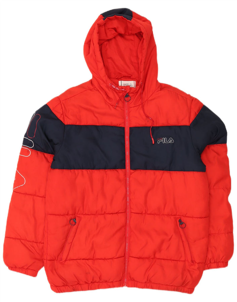 FILA Giacca imbottita con cappuccio grafica da uomo UK 38 Colore rosso medio