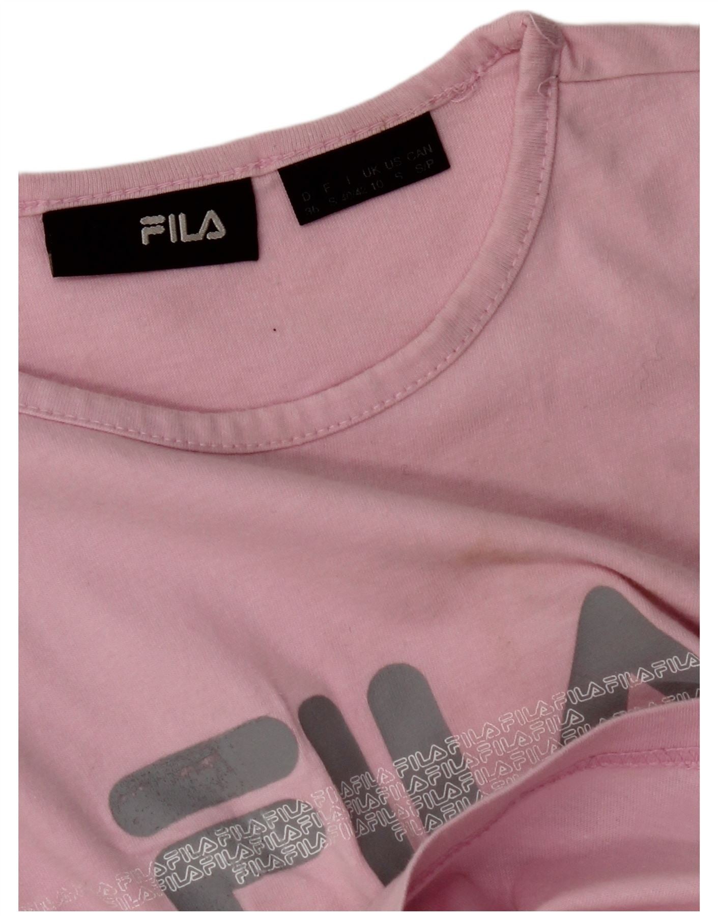 ELLESSE T-shirt grafica da donna corta Top UK 10 piccola cotone bianco