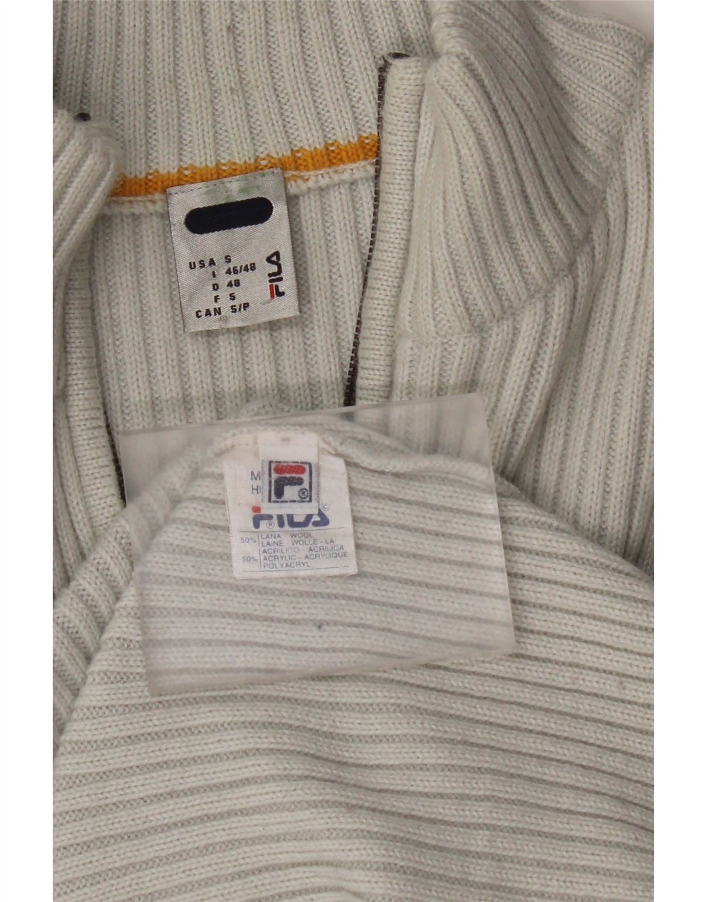 Maglione da donna FILA con zip e collo UK 10 piccolo in lana a righe grigie