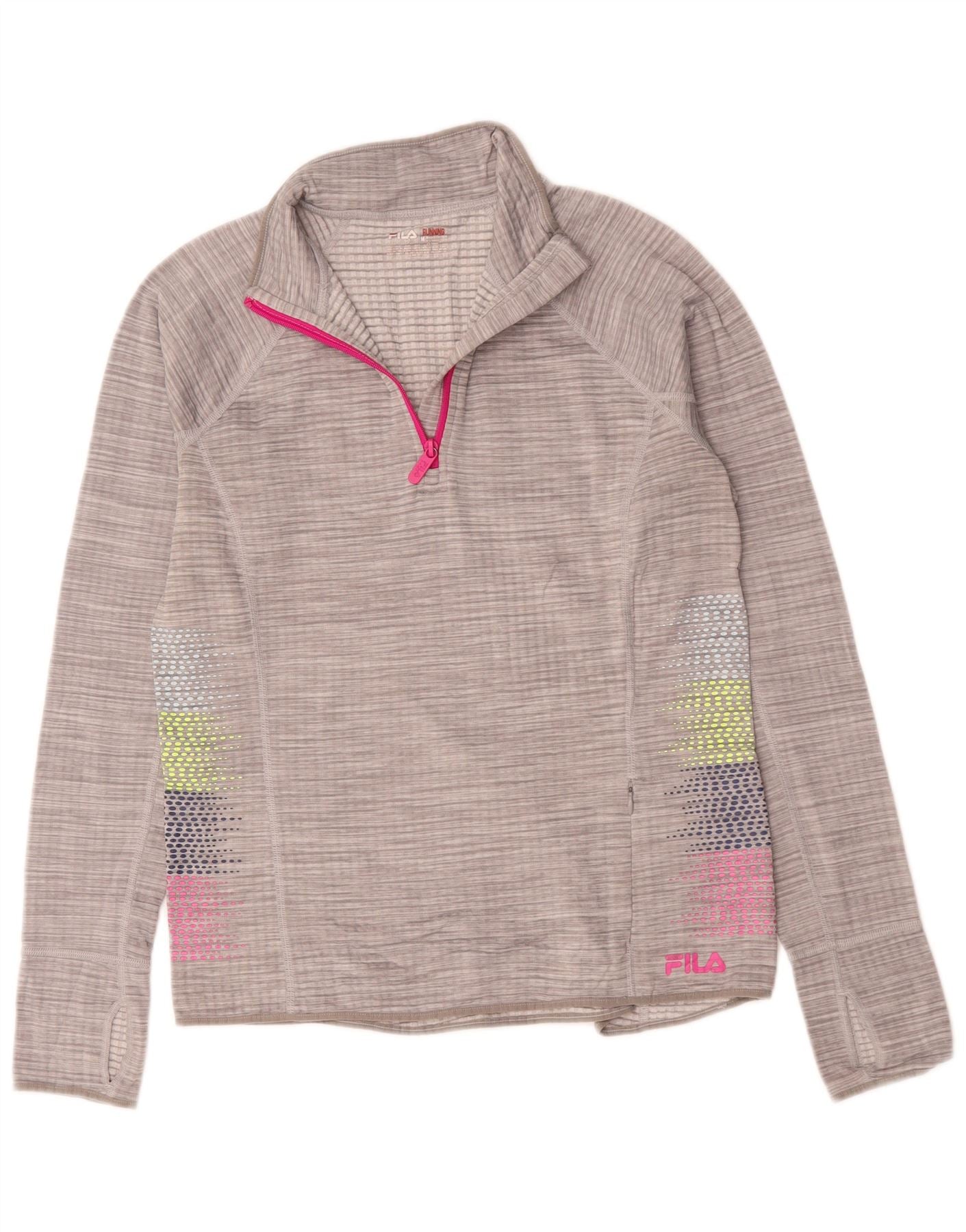 Maglia da ginnastica da donna Fila con zip e collo, UK 14, grigio medio chiazzato