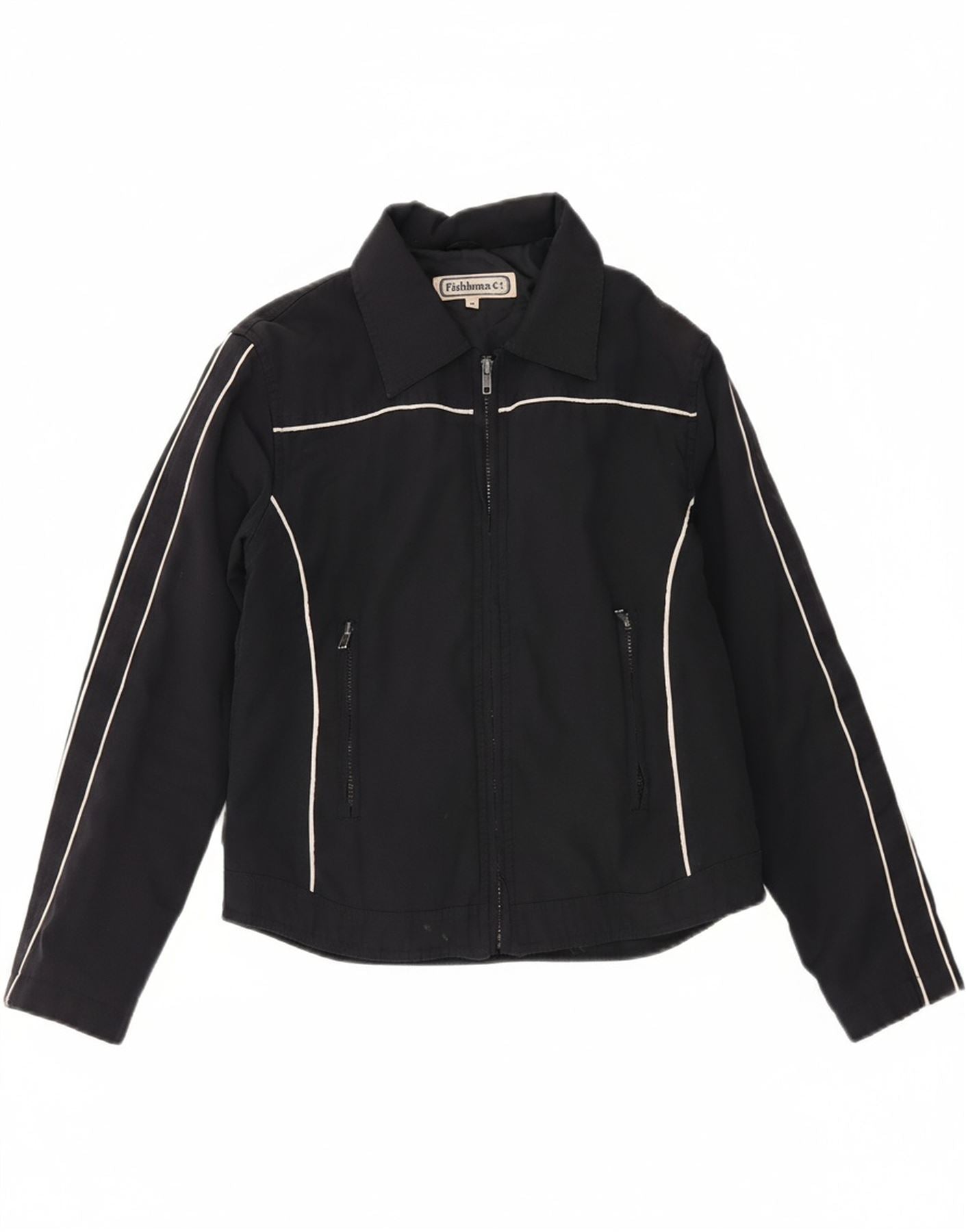 - AI Description: This Fishbone mens jacket is crafted from a durable black woven fabric. It features a collared neckline and a full zip closure. Long sleeves and a regular fit ensure comfort and ease of movement. Practical zipped pockets add functional detail to the design. This sports style jacket is ideal for active wear, offering a clean and versatile look.
