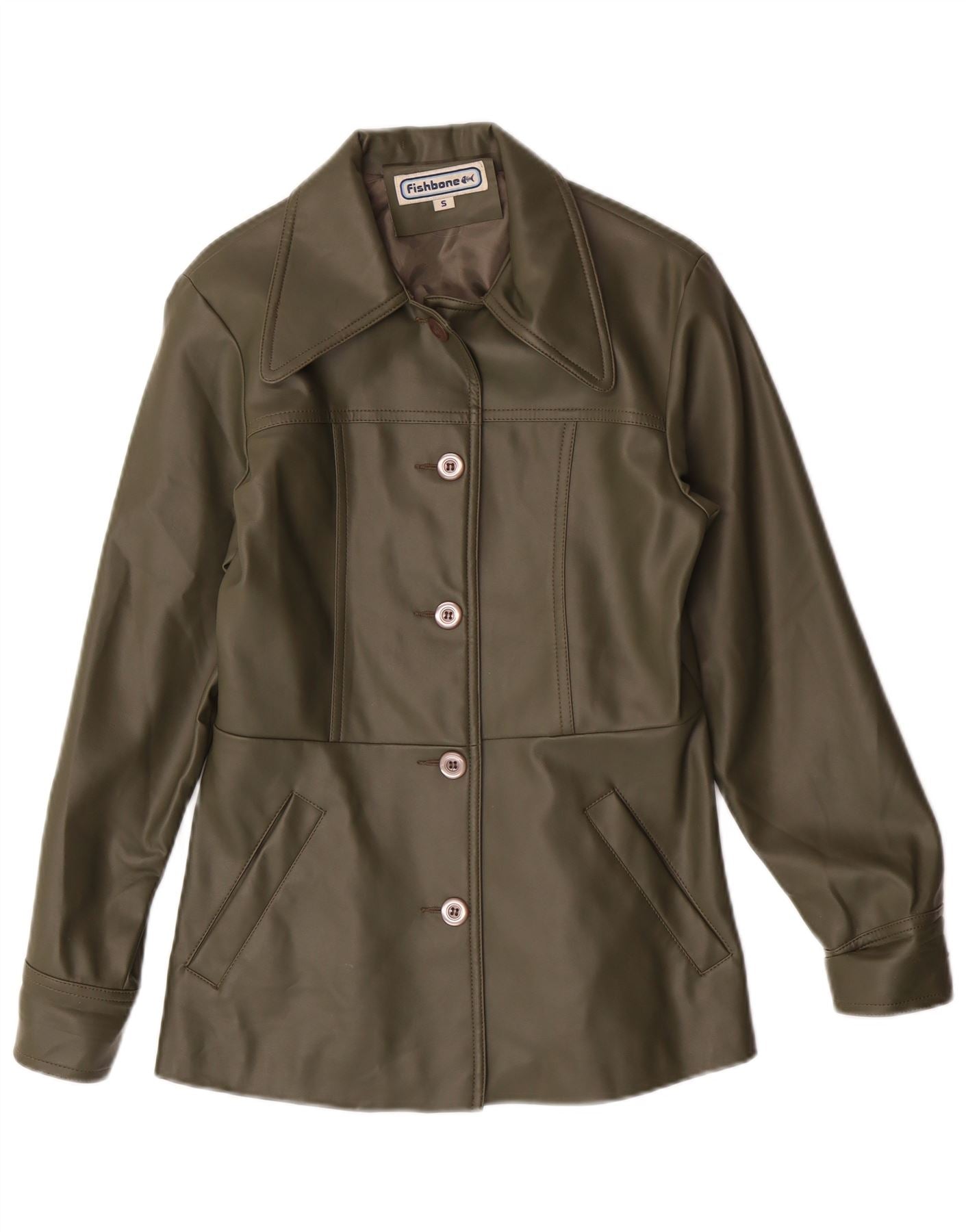 FISHBONE Giacca da donna in ecopelle UK 10 Small Verde Poliuretano