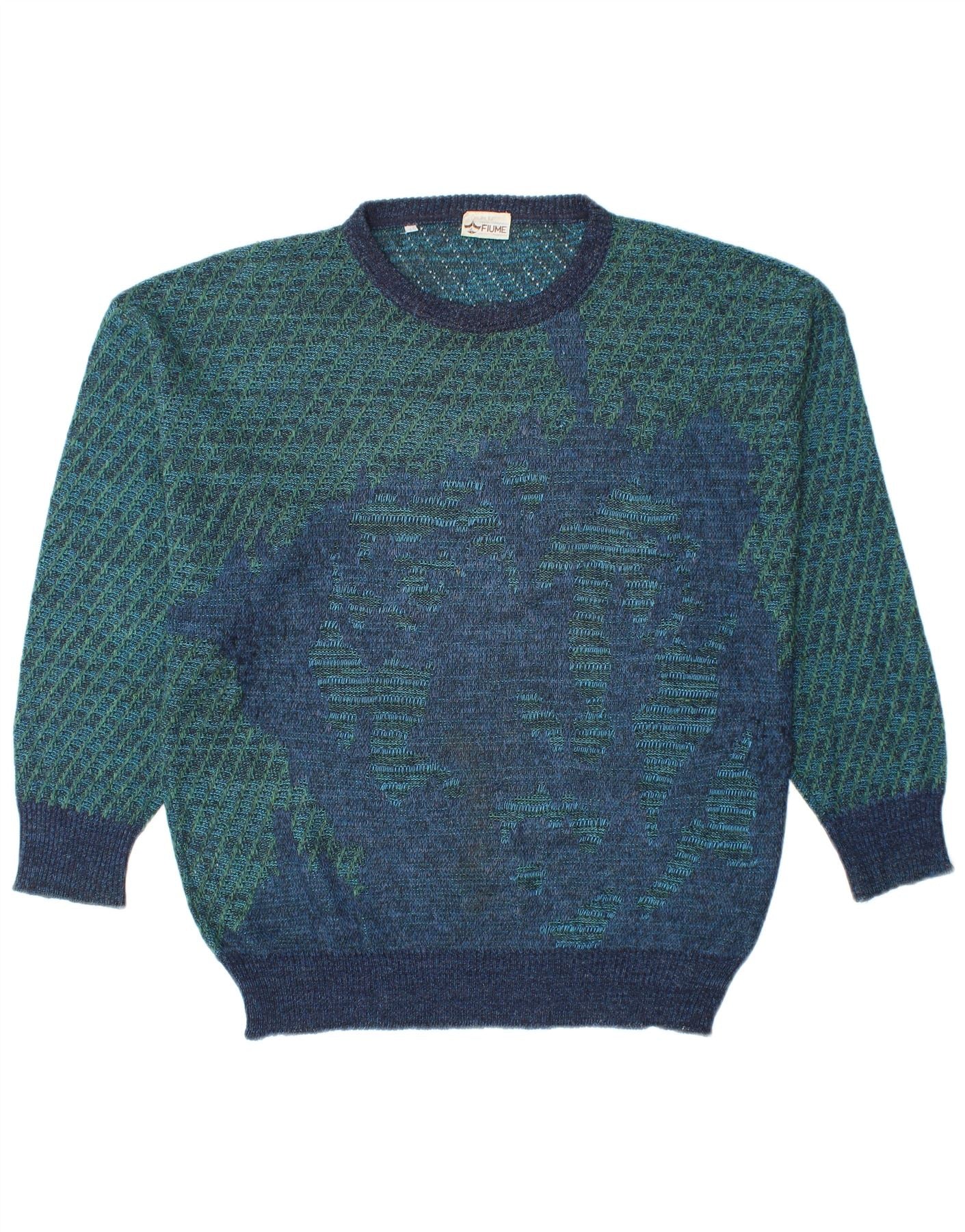Maglione maglione girocollo da uomo FIUME IT 52 Acrilico a righe grandi blu