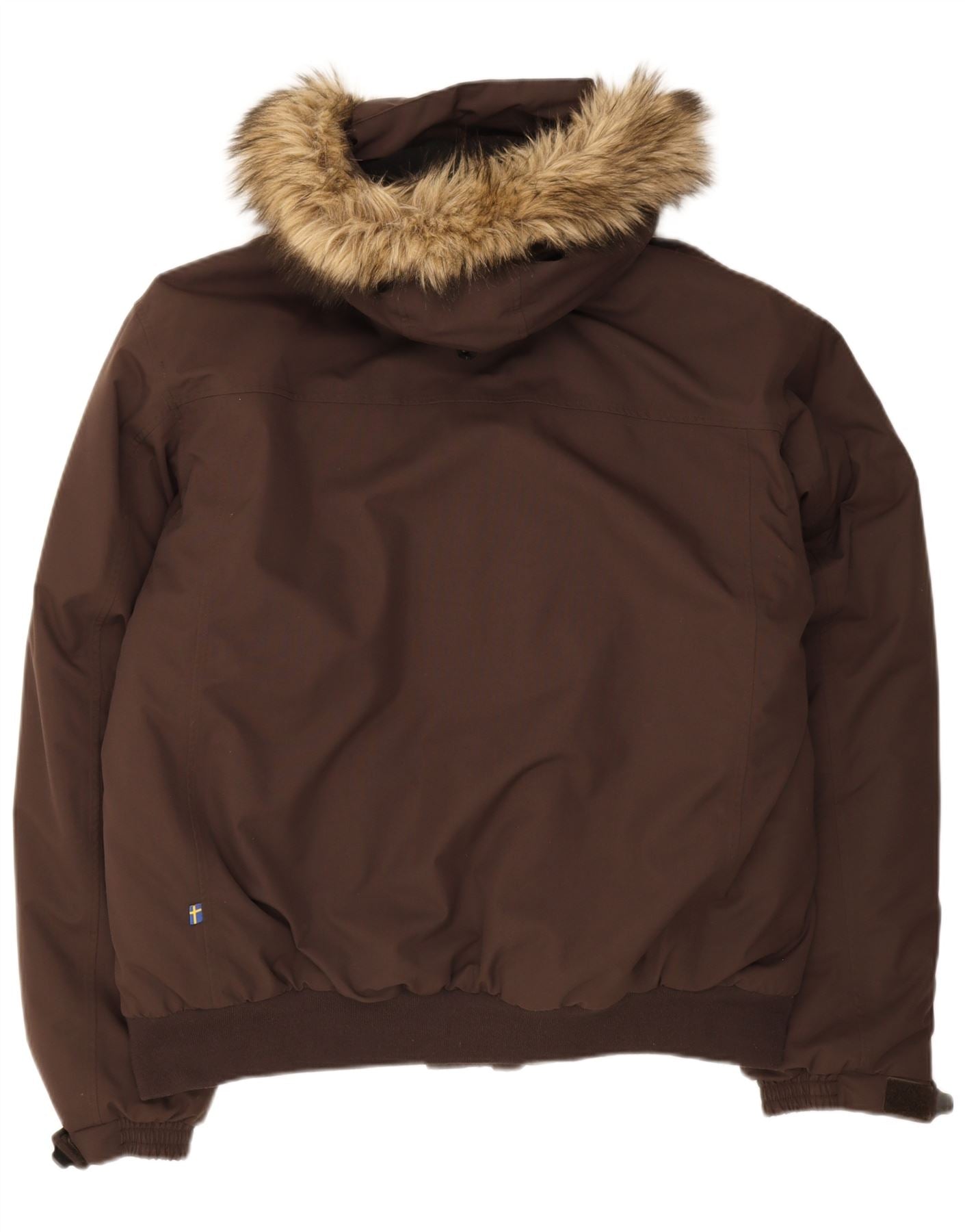 FJALL RAVEN Mens Hooded Bomber Jacket UK 44 2XL Brown Polyester