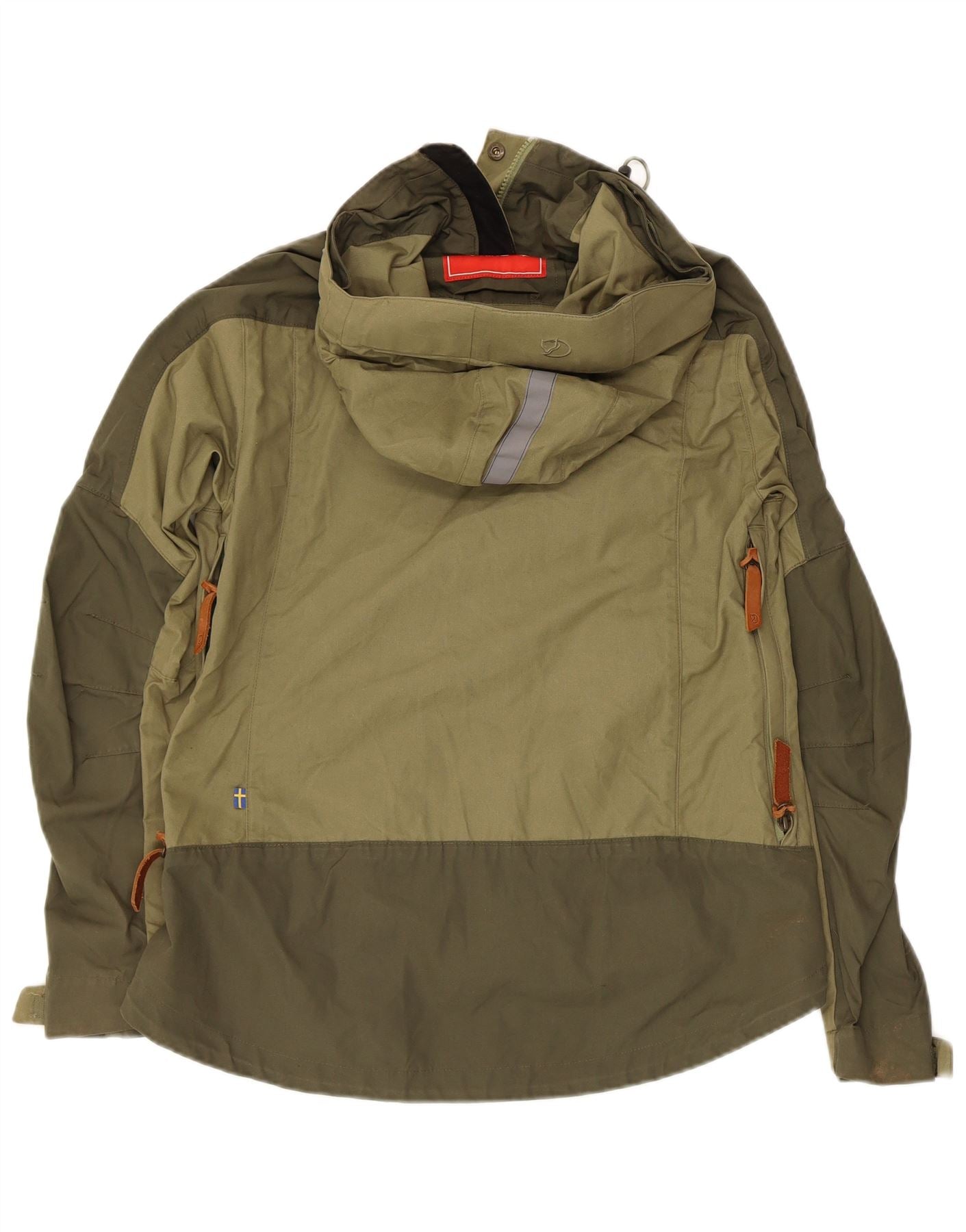 FJALL RAVEN Womens Oversized Rain Jacket UK 10 Small Khaki Colourblock