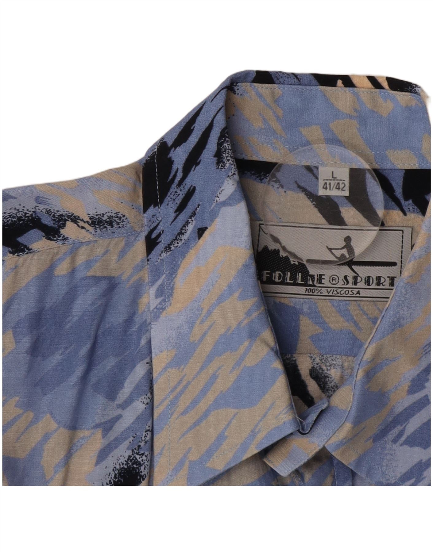 FOLLIE Camicia da uomo a maniche corte con motivo astratto taglia 41/42 grande blu