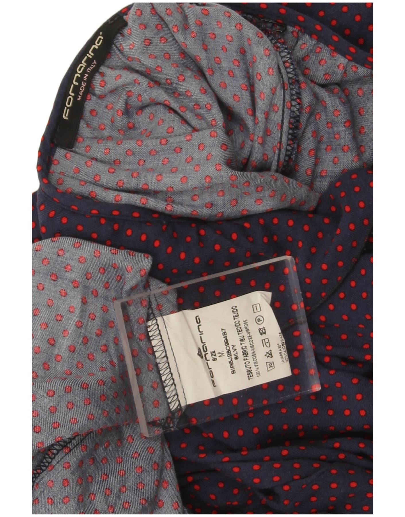 Fornarina Camicetta da donna Top UK 14 Medium Navy Blue Spotted Retro