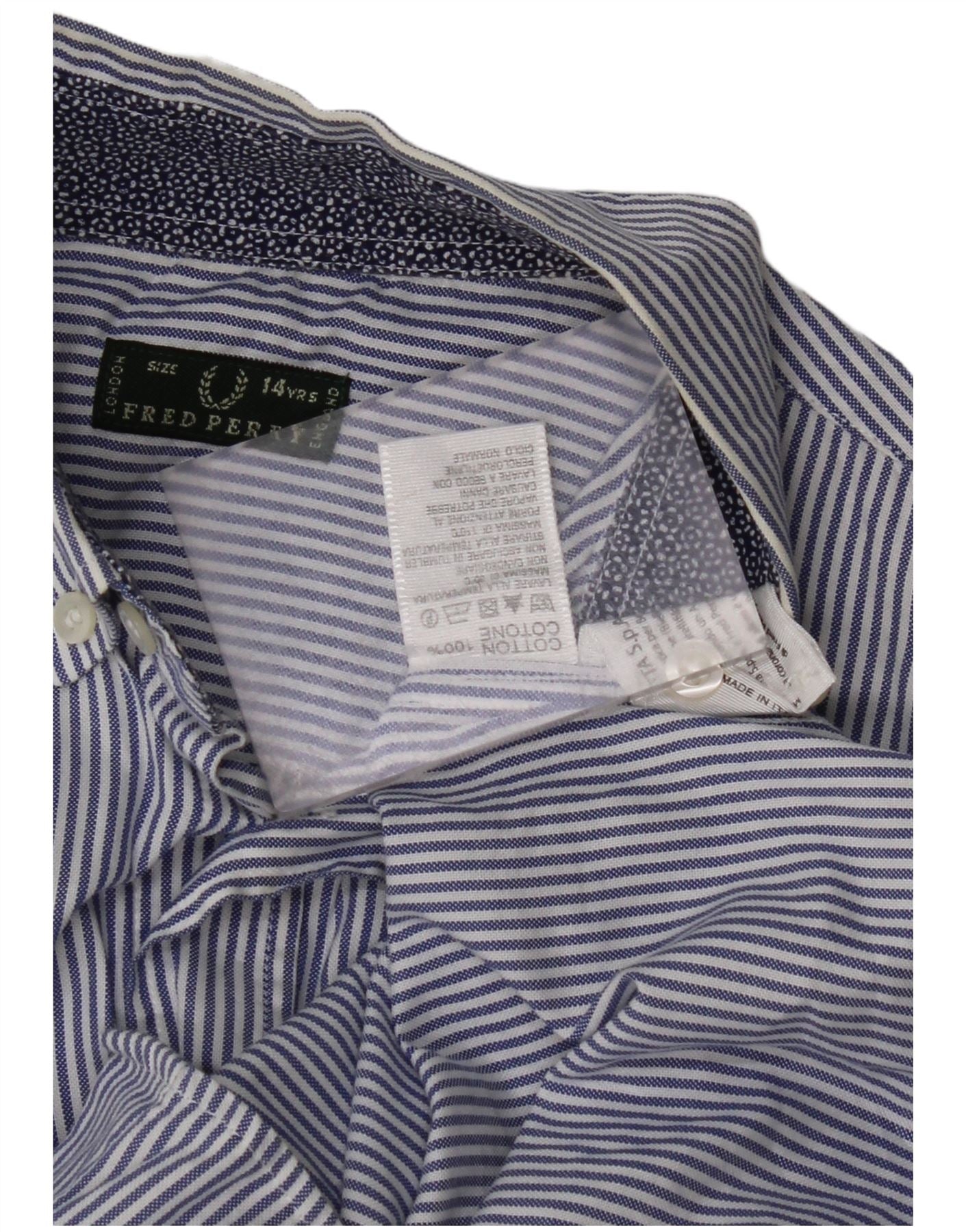 Camicia Bambino FRED PERRY 13-14 Anni Cotone Gessato Blu Navy