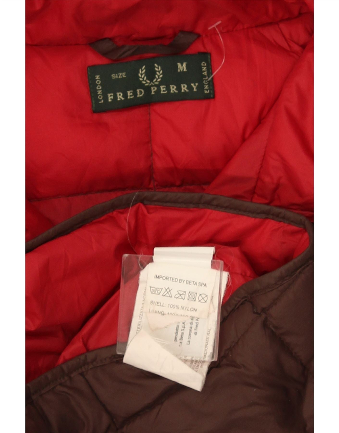 Giacca imbottita con cappuccio da uomo Fred Perry UK 38 Nylon marrone medio