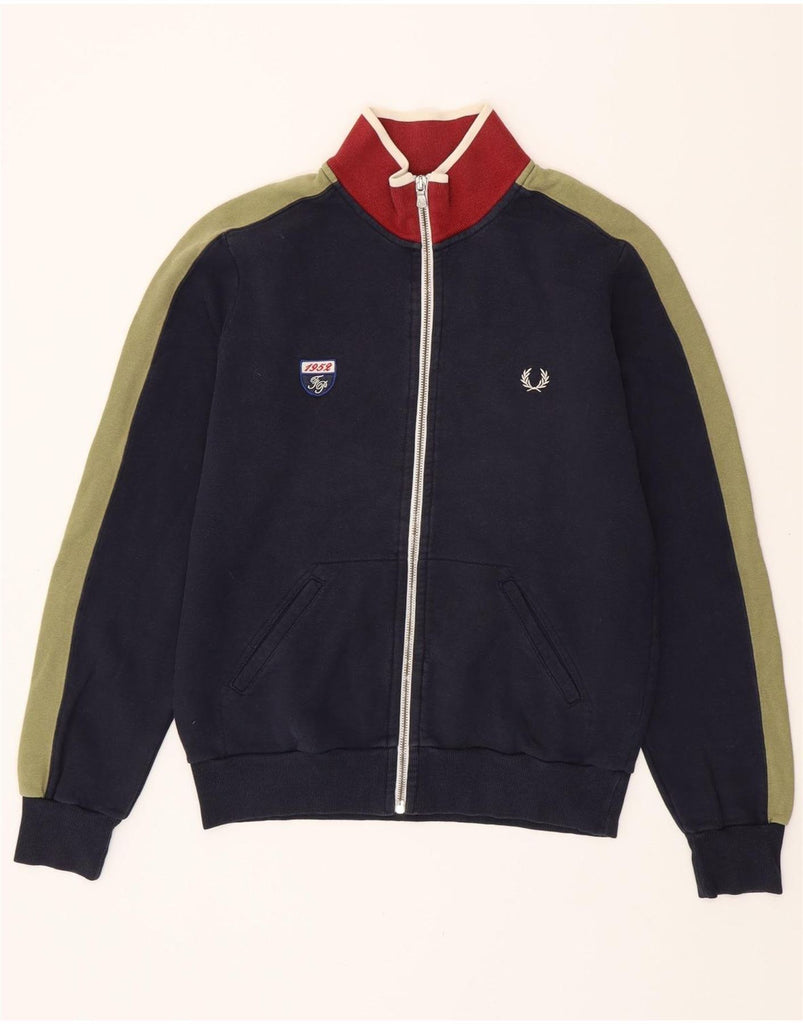 FRED PERRY Giacca da tuta da uomo piccola in cotone color block blu navy