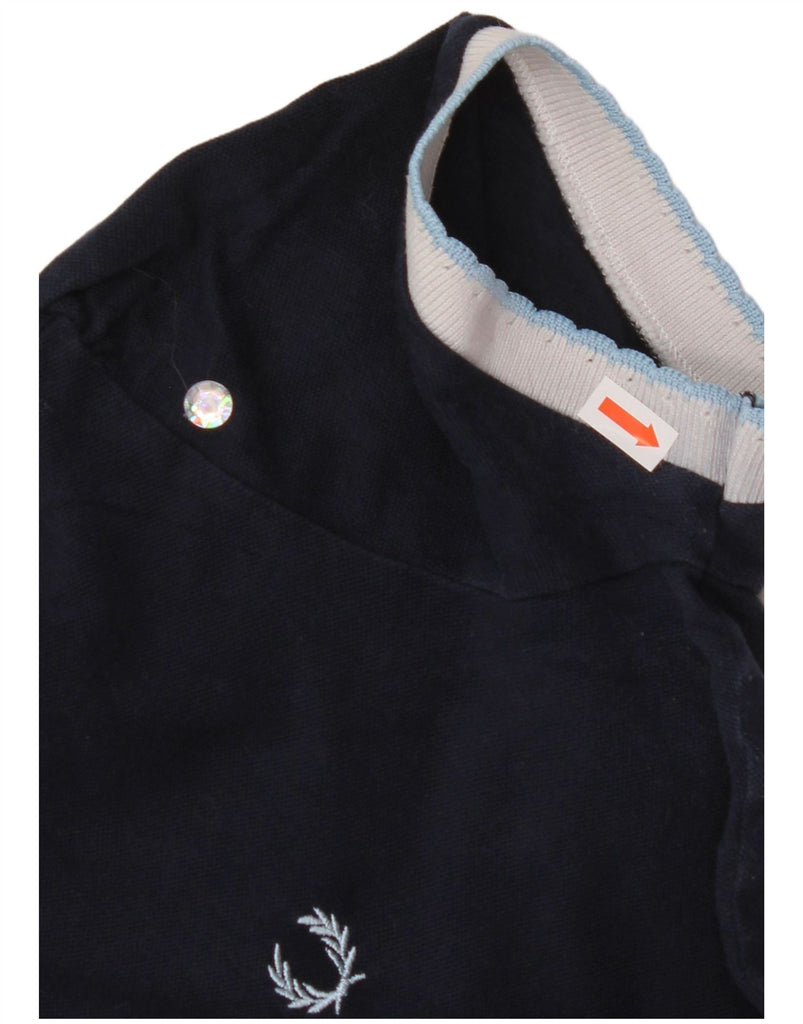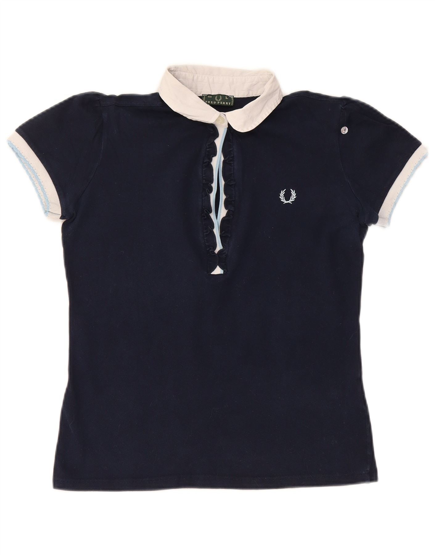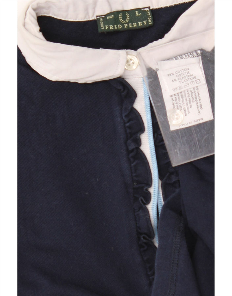 Polo corta da donna FRED PERRY UK 14 Large in cotone color block blu navy