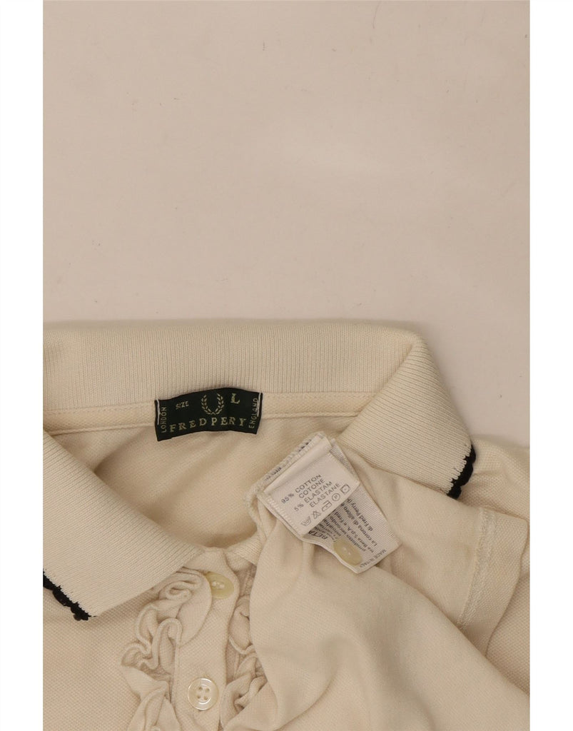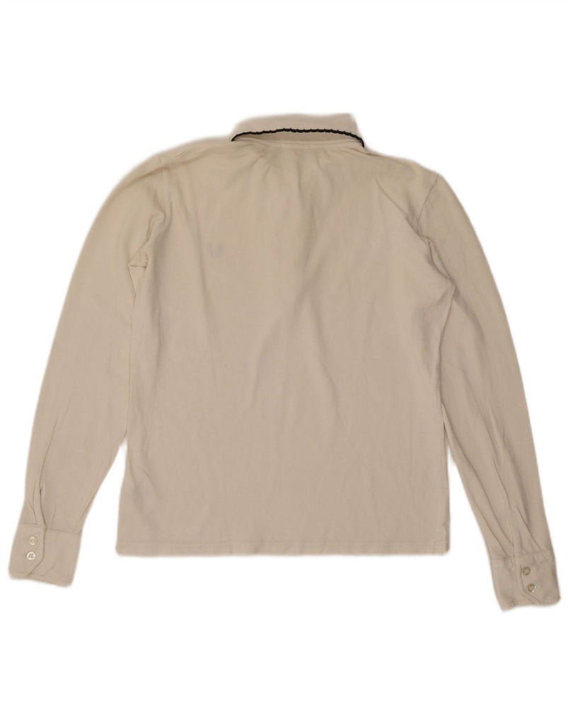 FRED PERRY Polo da donna a maniche lunghe con volant sul davanti UK 14 Large Bianca