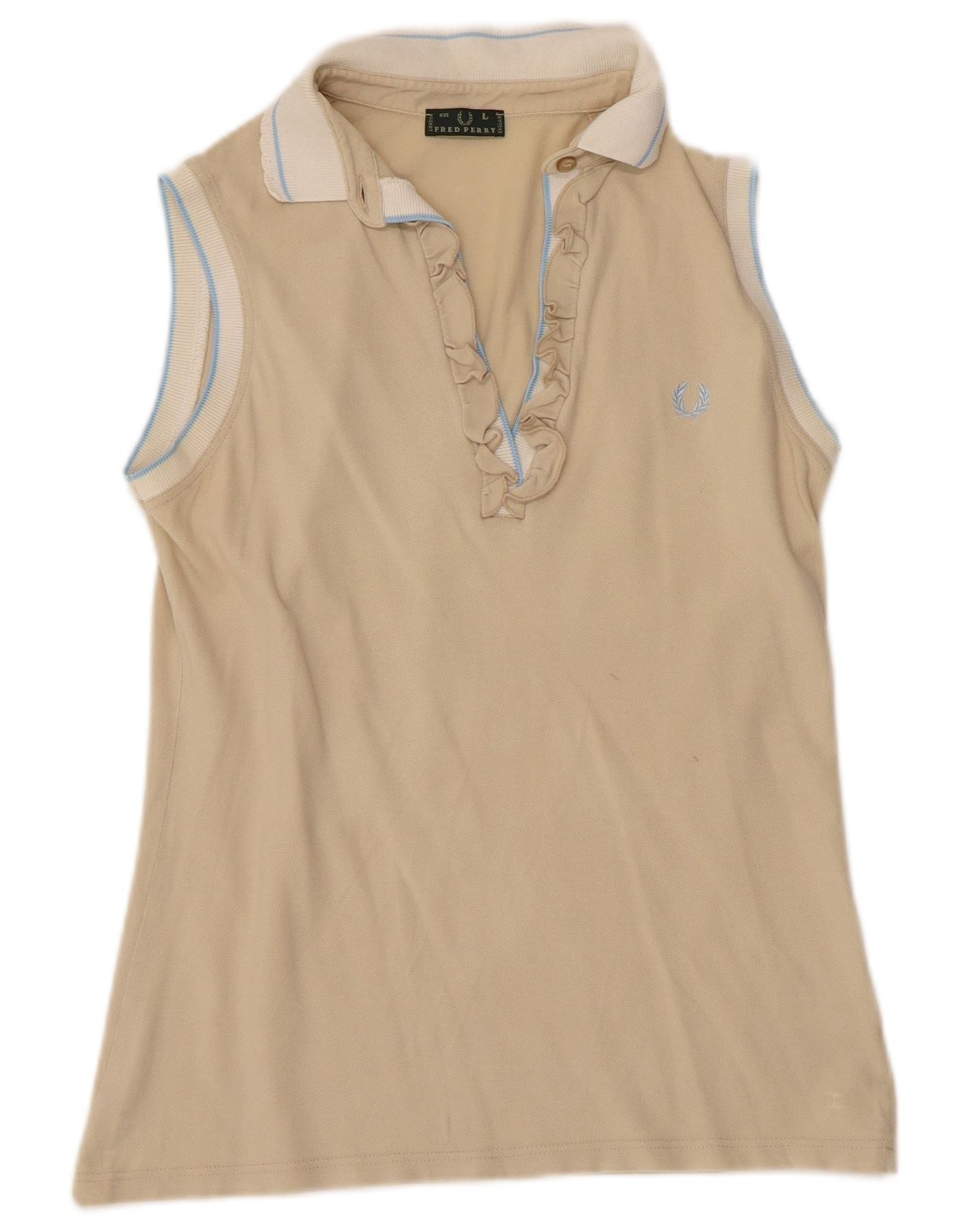 Polo da donna FRED PERRY con volant sul davanti UK 14 Large Beige Colourblock