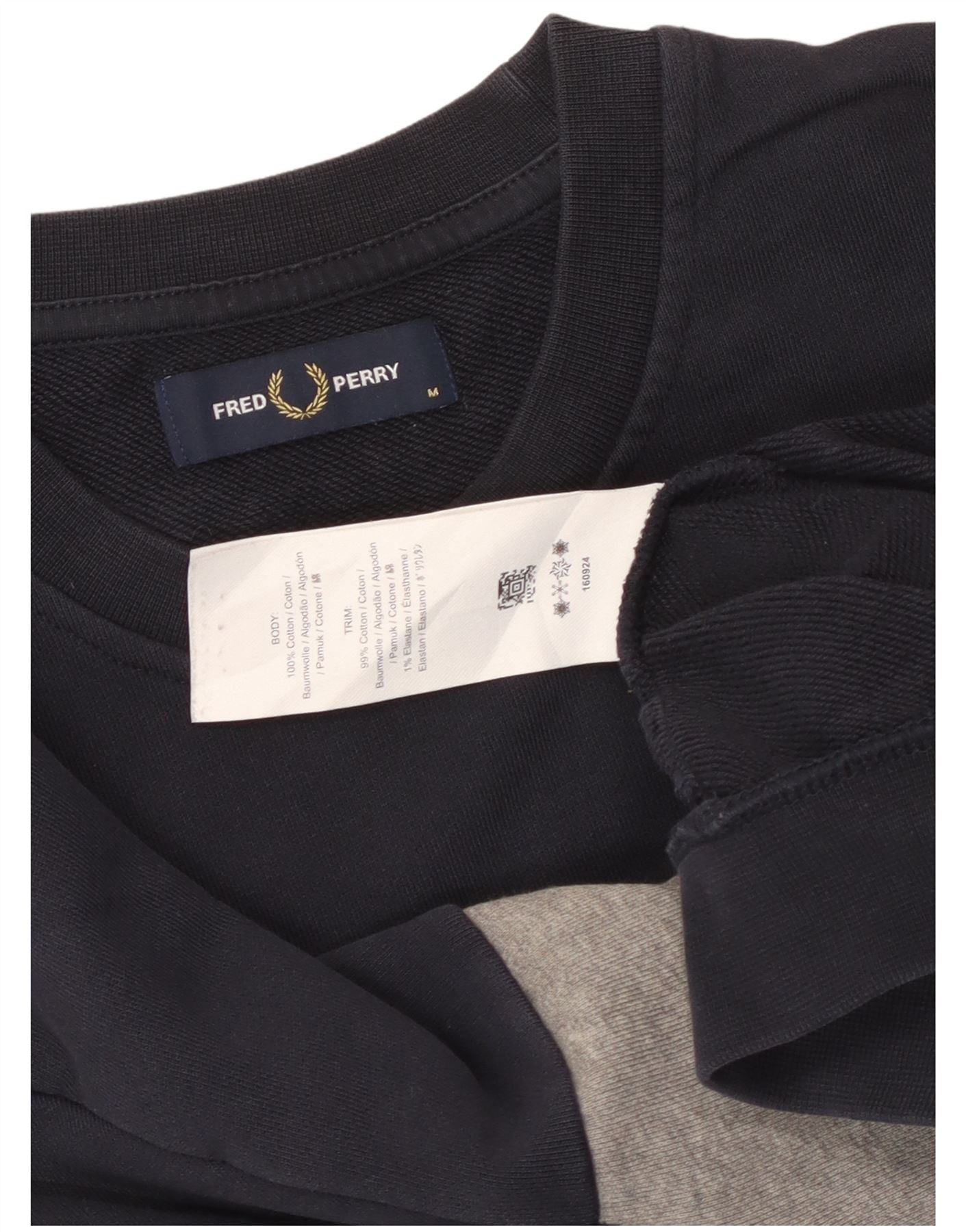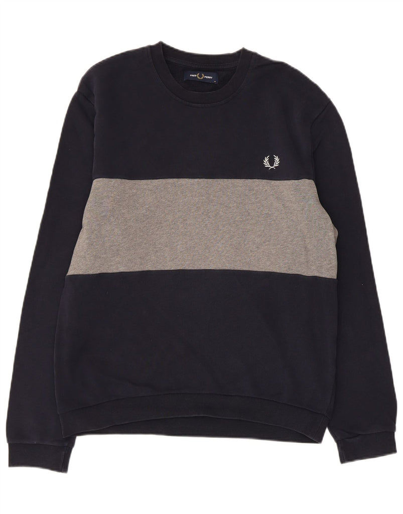 FRED PERRY Felpa da donna Maglione UK 14 Medium Blu Navy Colourblock