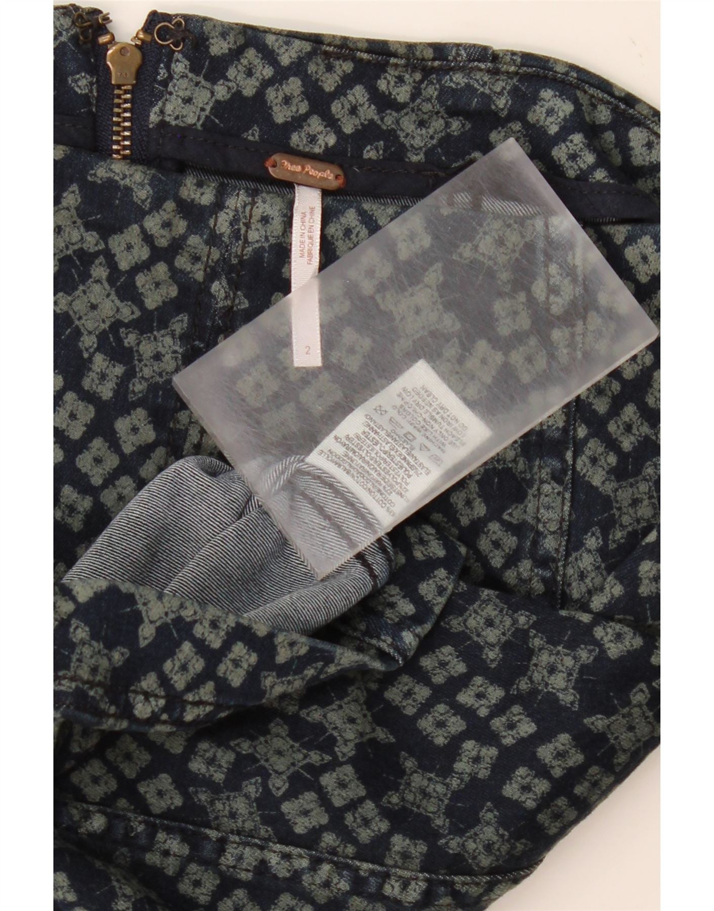 FREE PEOPLE Womens Denim Skirt US 2 XS W26 Navy Blue Geometric Cotton