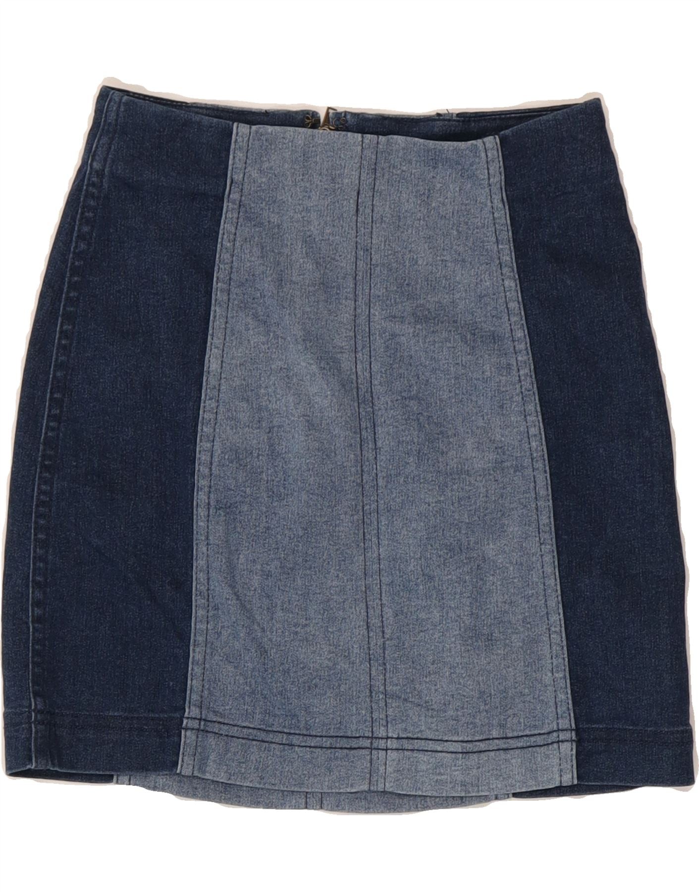 FREE PEOPLE Womens Denim Skirt W26 Small Blue Colourblock Cotton