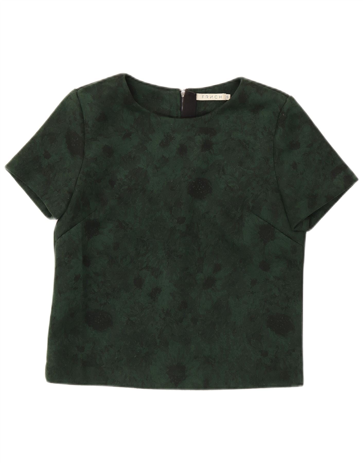 FRNCH Camicetta corta da donna Top UK 16 Piccolo poliestere floreale verde