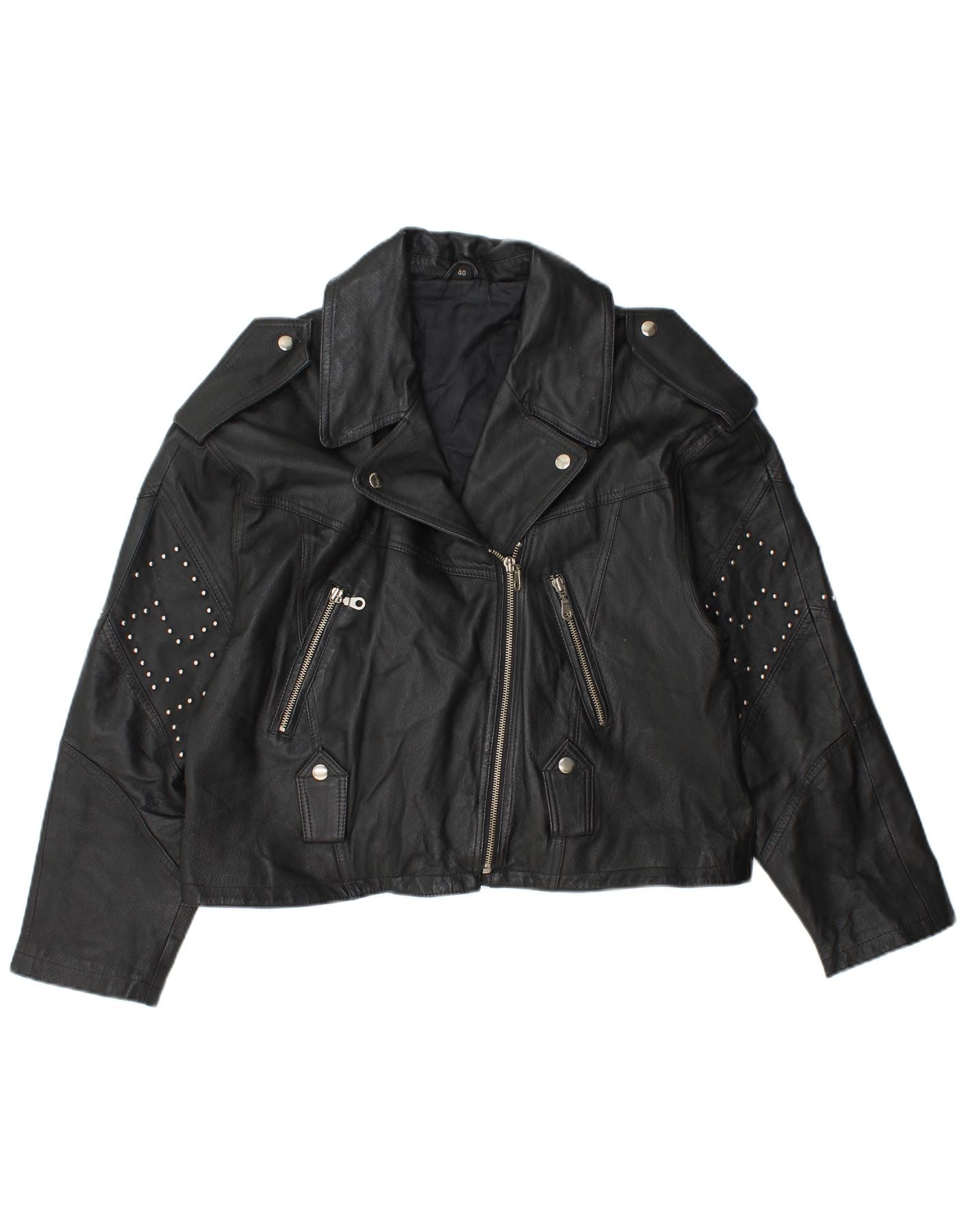 Giacca da motociclista in pelle corta da donna Front Line UK 14 Grande pelle nera