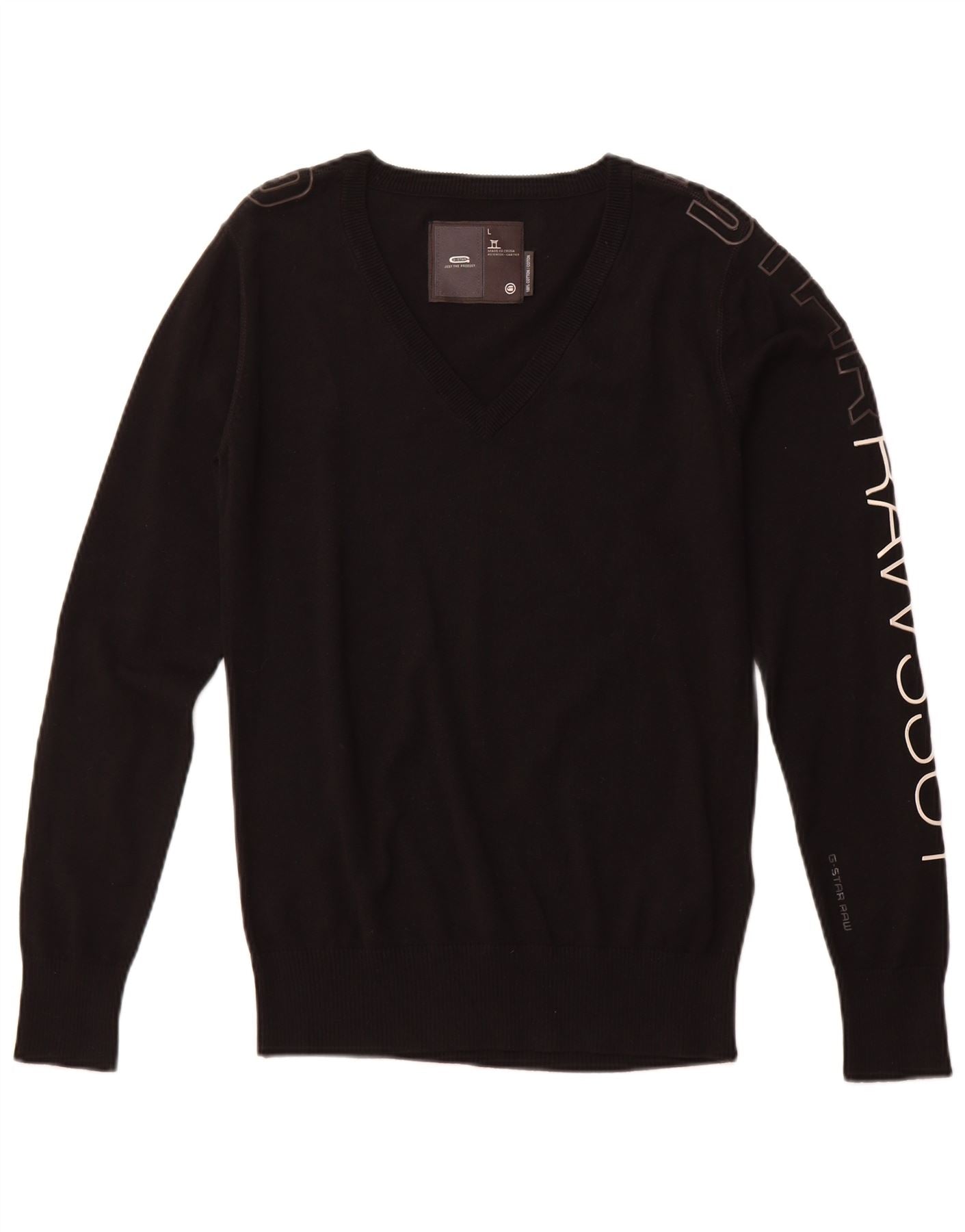 Maglione da uomo con scollo a V grafico G-STAR grande cotone nero