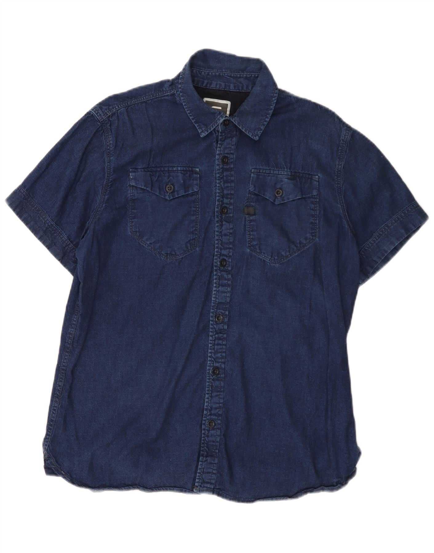 Camicia di jeans a maniche corte da uomo G-STAR XL in cotone blu navy