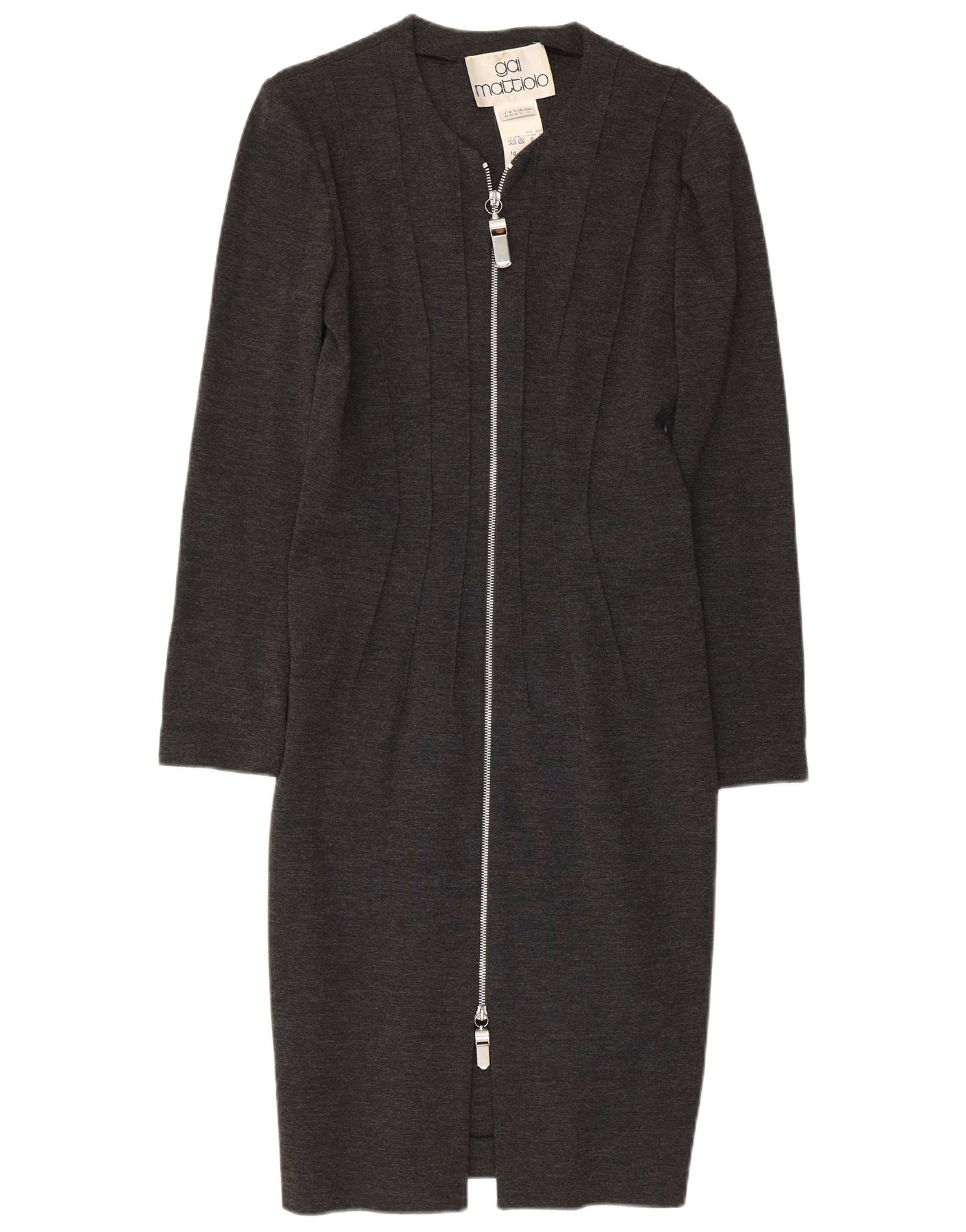 GAI MATTIOLO Abito aderente a maniche lunghe da donna UK 16 Large Grigio Lana Vergine