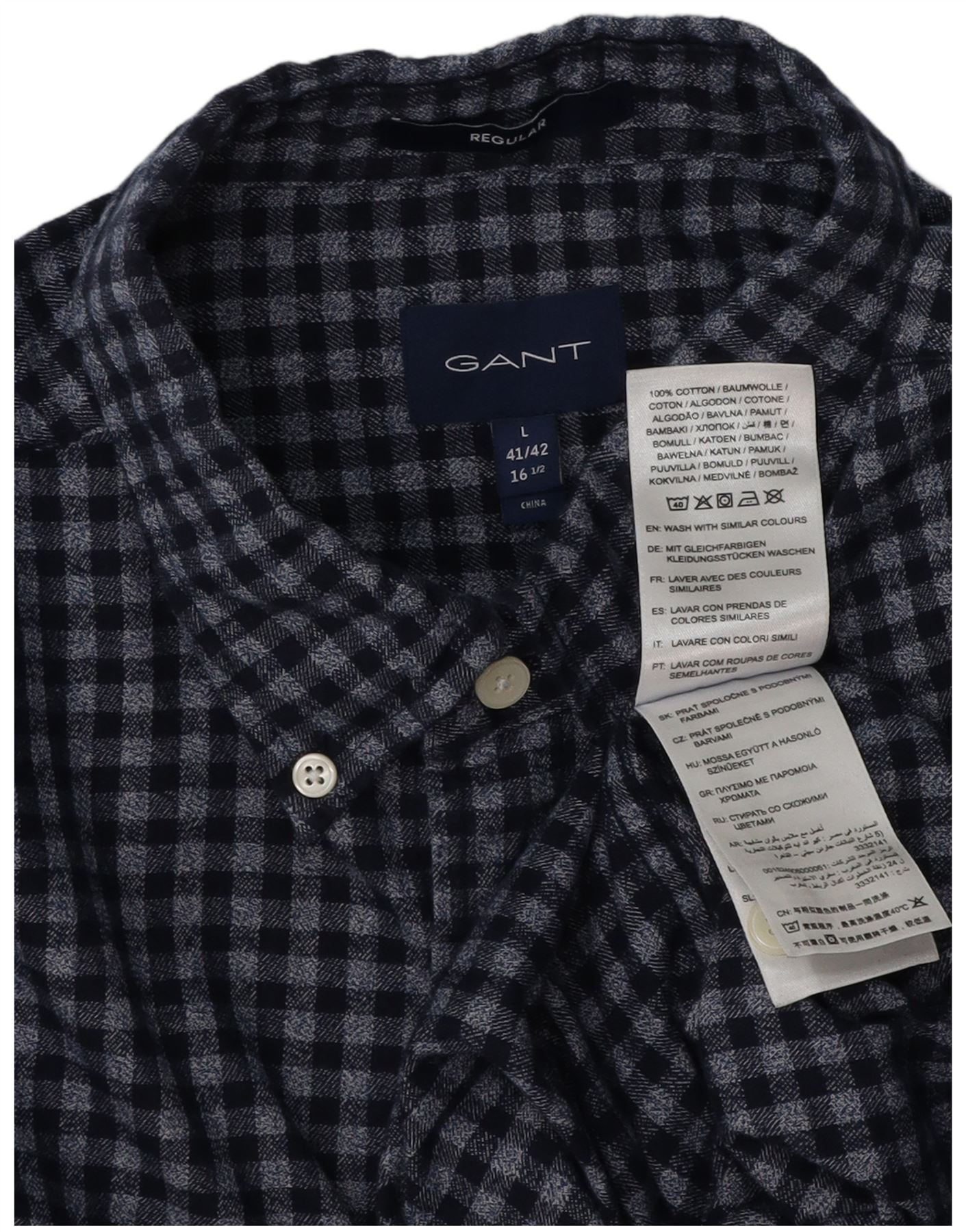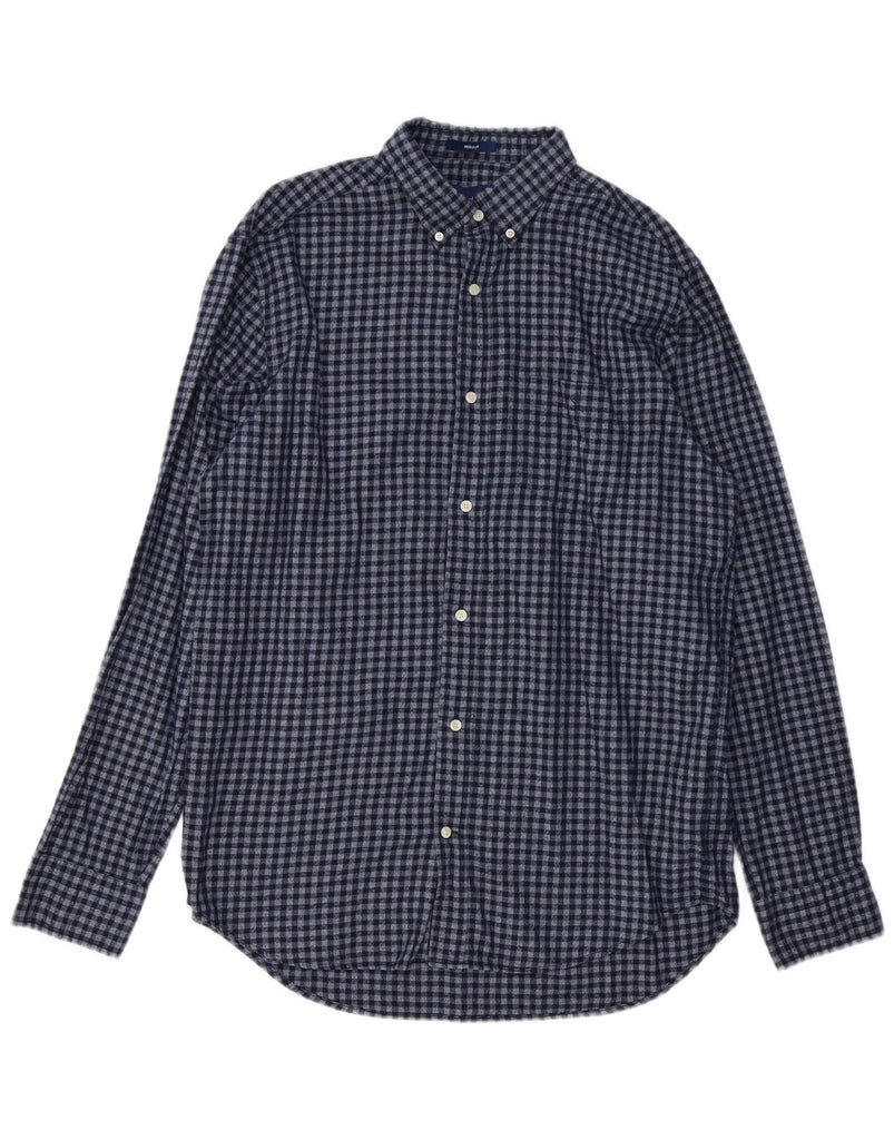 GANT Camicia da uomo in flanella taglia 41/42 16 1/2 grande a quadretti blu navy