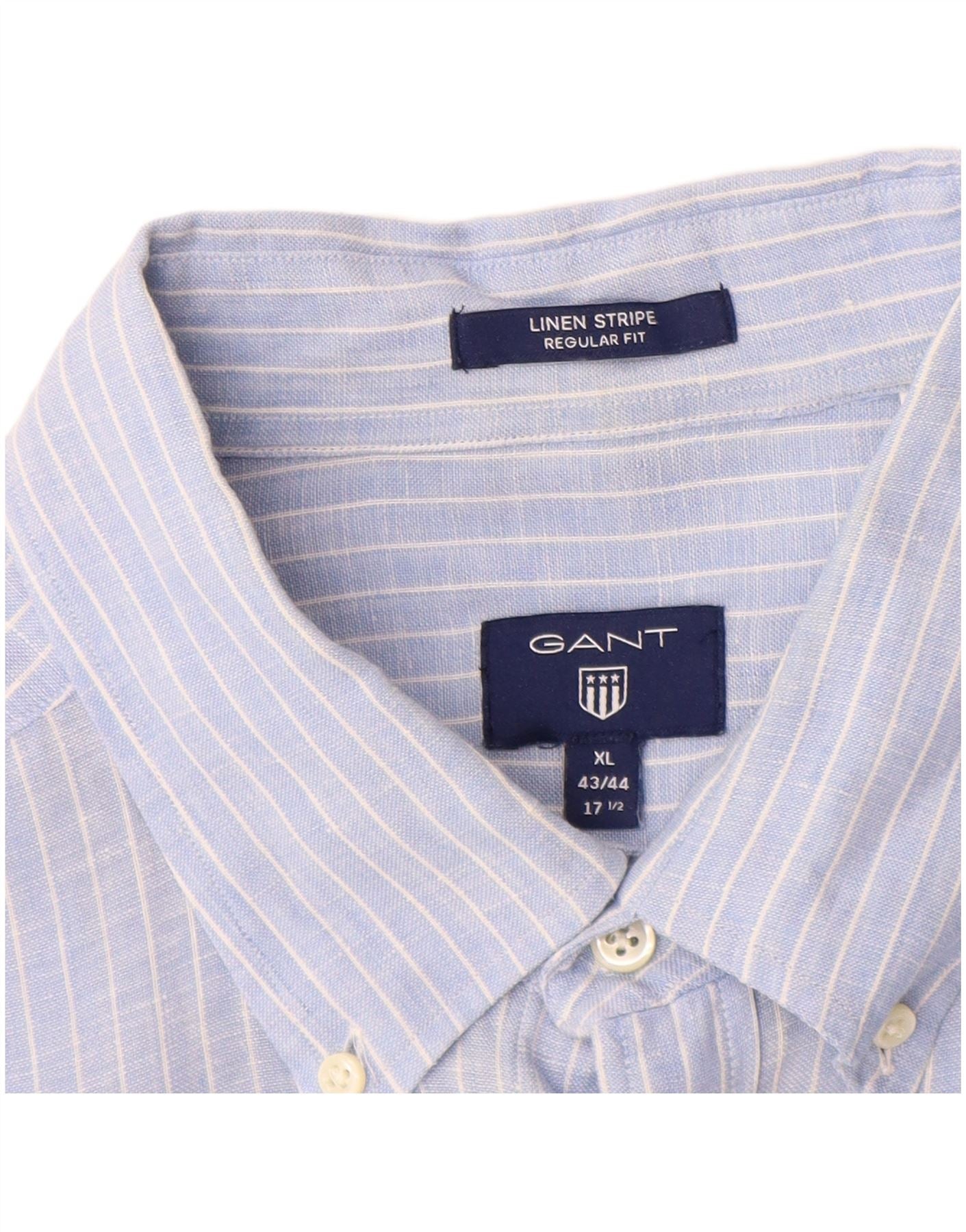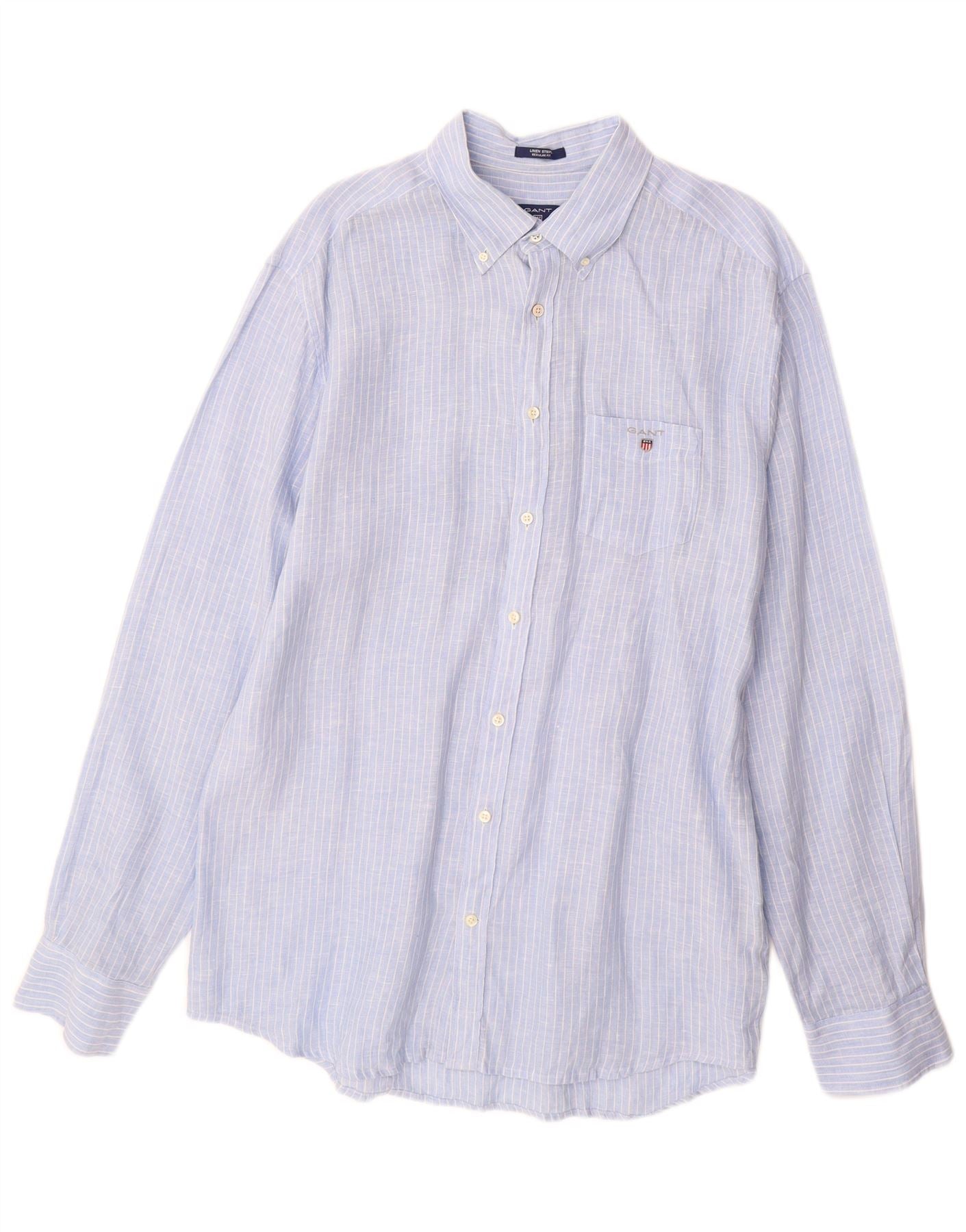 Gant Camicia da uomo vestibilità regolare taglia 43/44 17 1/2 XL Lino gessato blu
