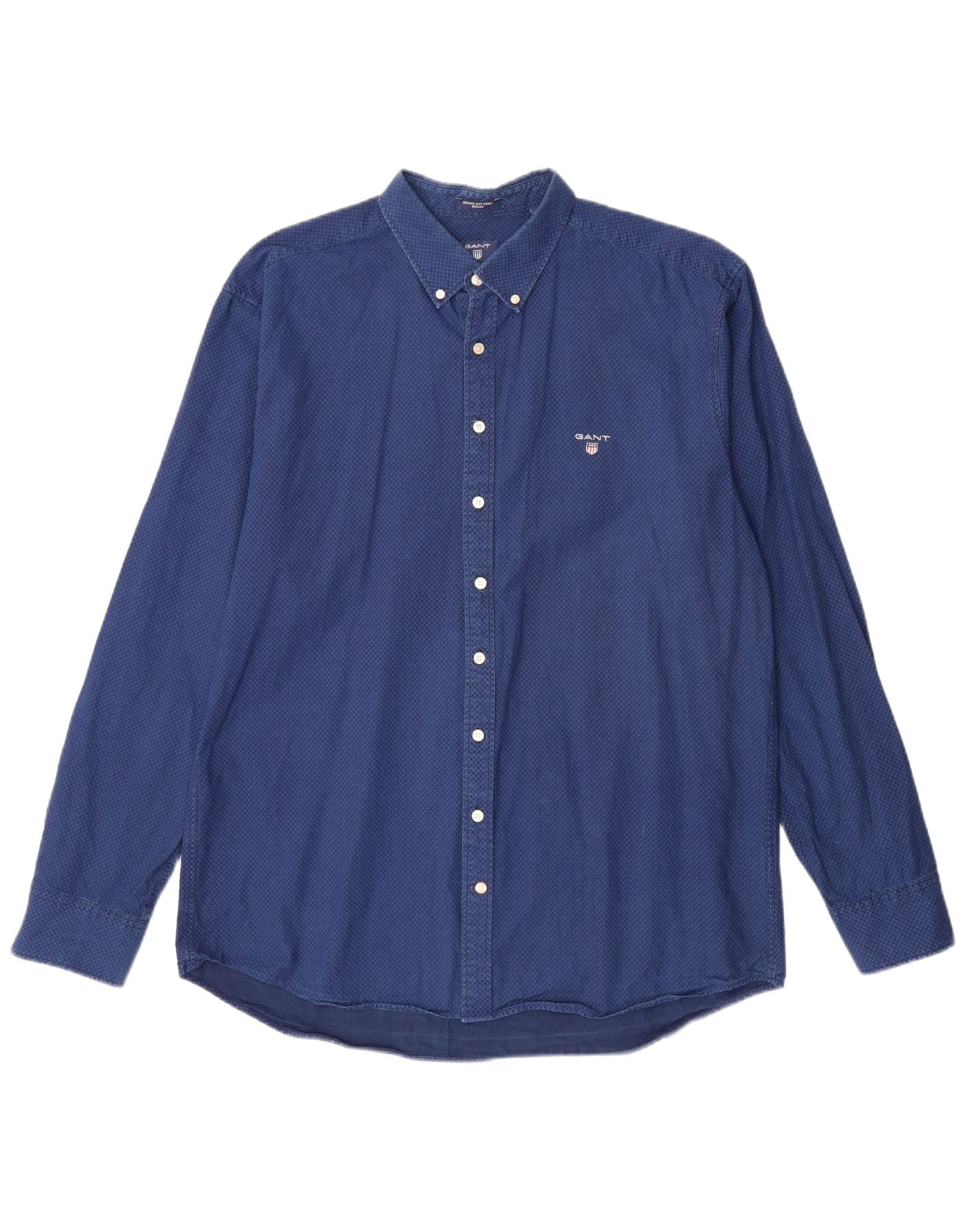 GANT Camicia da uomo vestibilità regolare taglia 45/46 18 2XL cotone geometrico blu