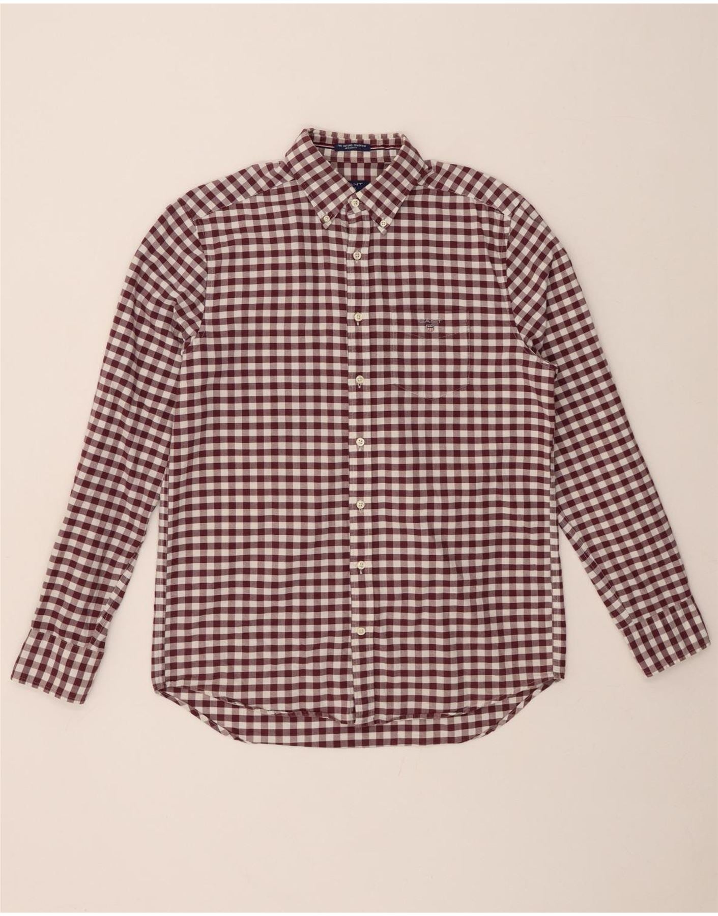 GANT Camicia da uomo Taglia 39/40 15 1/2 Medio Cotone a quadretti marrone