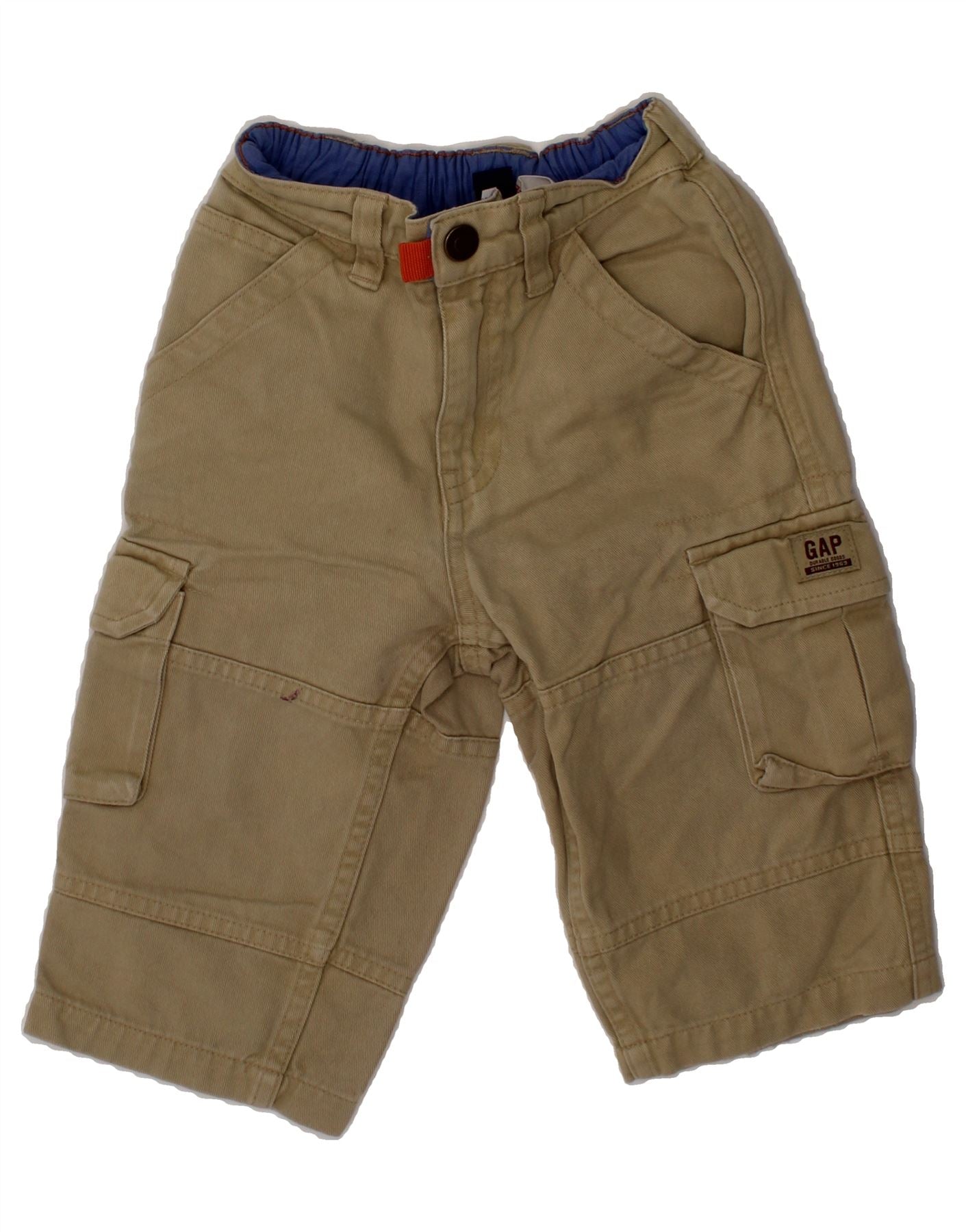 - AI Description: These classic khaki cargo shorts from Gap are perfect for any young lad. Crafted from durable 100% cotton canvas, they feature a comfortable regular fit with an elastic, adjustable waist. The button closure ensures a secure fit, while multiple pockets provide ample storage. Pre-owned in excellent condition, with minor stains on the pocket, size 3. Machine washable.