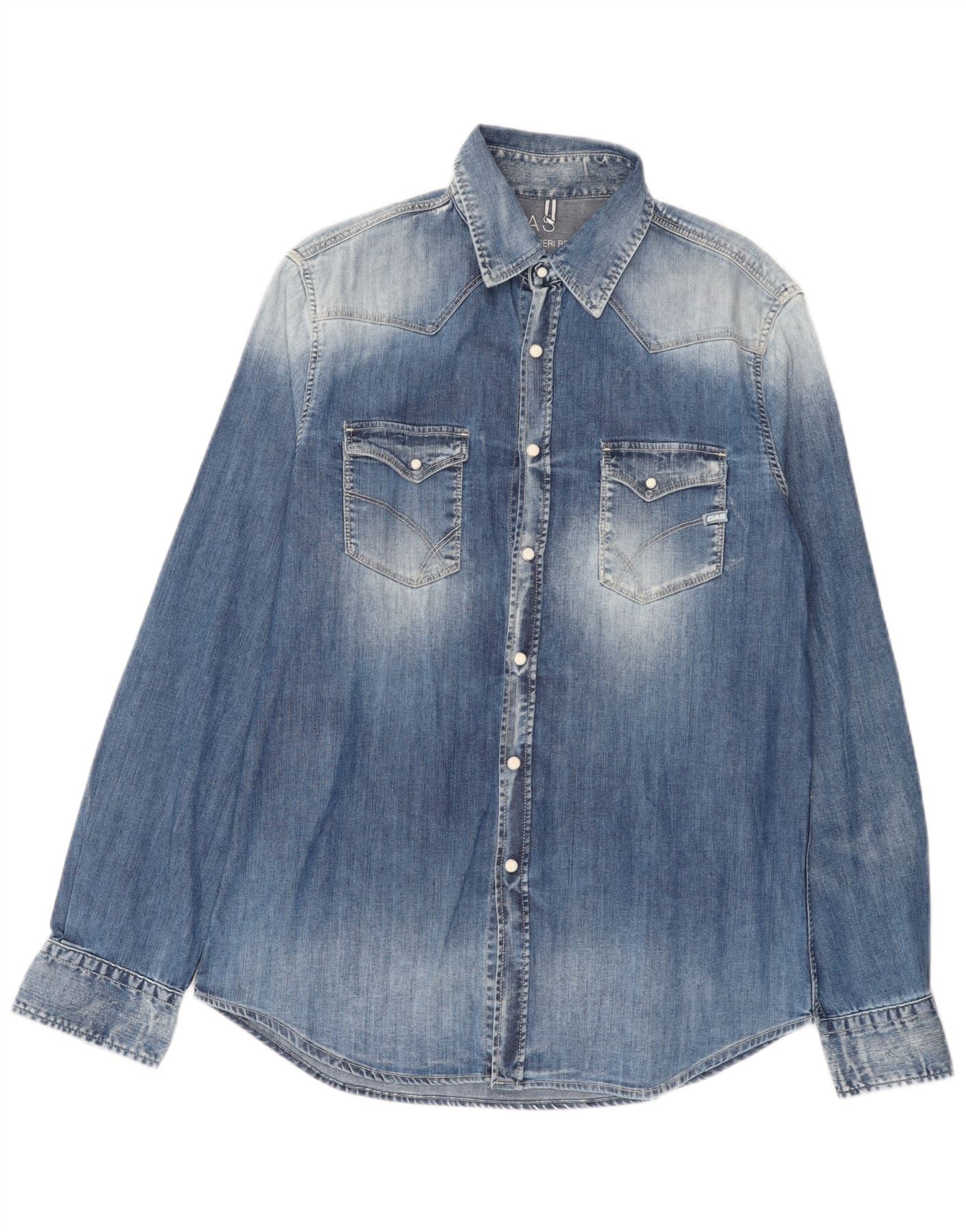 Gas Camicia di jeans da uomo con lavaggio acido, grande in cotone blu