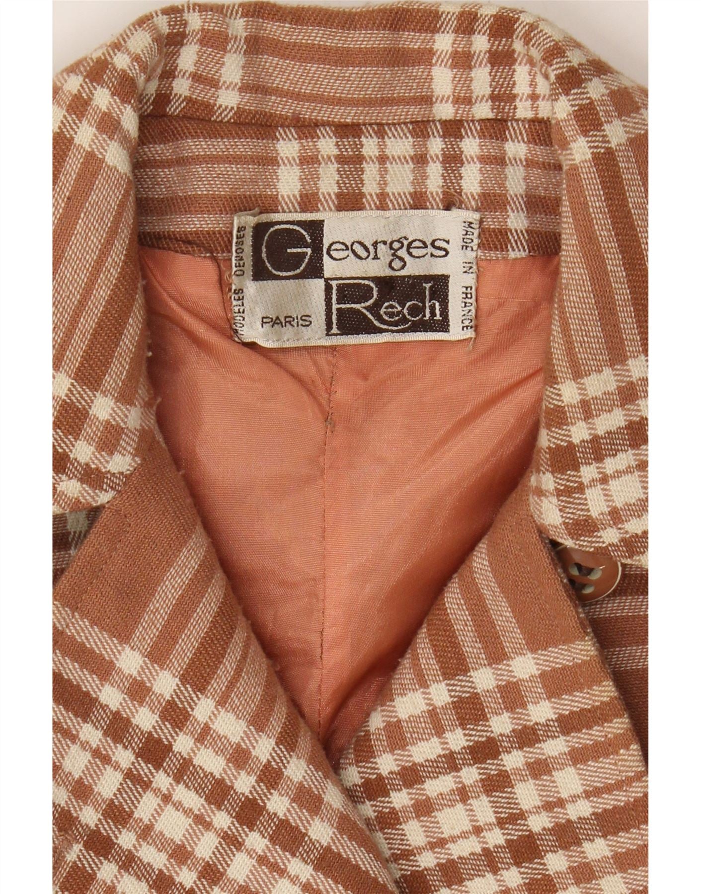 GEORGES RECH Womens Double Breasted Coat UK 10 Small Brown Check