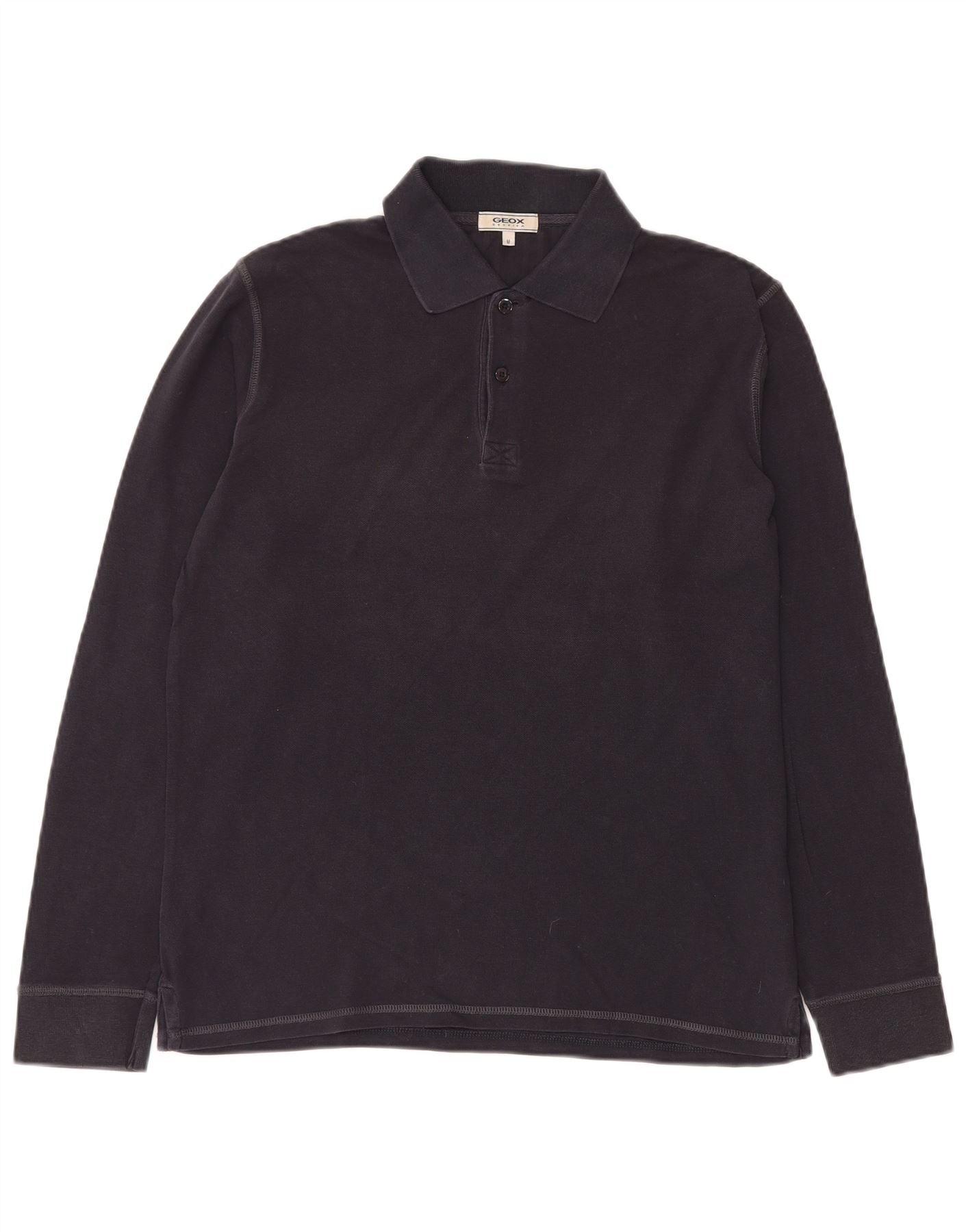 Polo da uomo a maniche lunghe GEOX Respira blu medio medio